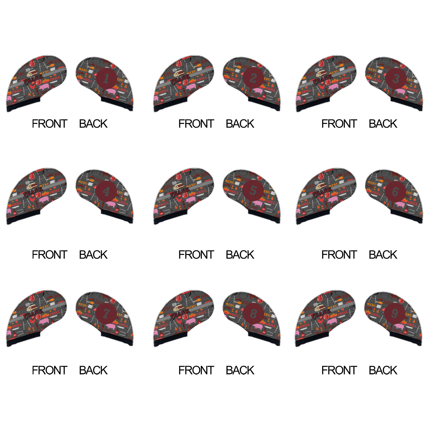 This design features pigs, cows, grills, and more on a simple grey background. There are wonderful contrasting reds, oranges, and charcoals in this manly design. The ribbon across the middle fits your personalization right in the middle.