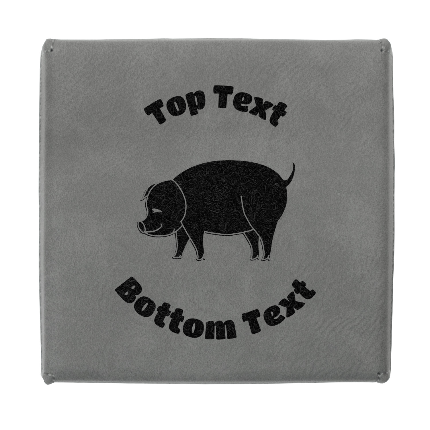 This design features pigs, cows, grills, and more on a simple grey background. There are wonderful contrasting reds, oranges, and charcoals in this manly design. The ribbon across the middle fits your personalization right in the middle.