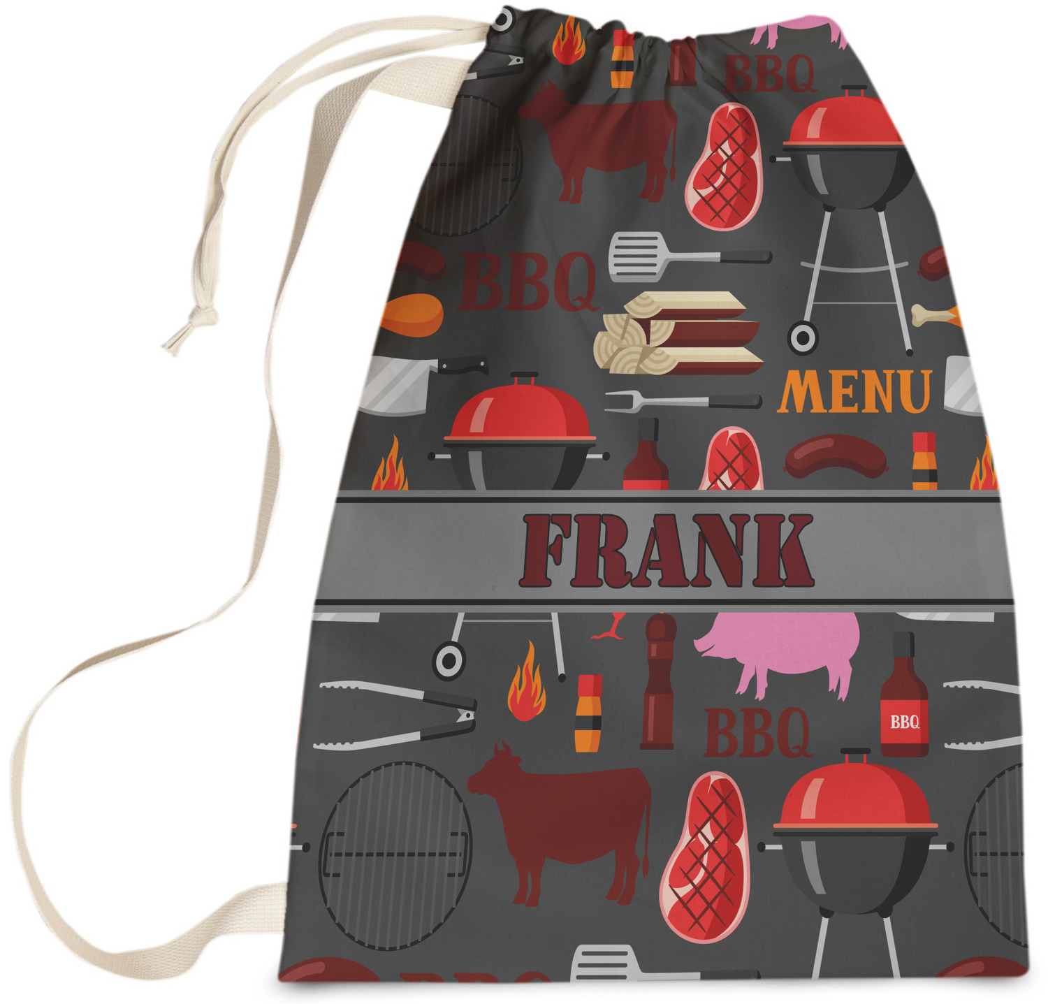 Carry your laundry in style with these customized laundry bags. Available in two sizes, featuring a natural colored woven strap and a cinch cord, these bags hold a lot of clothes or anything else you want to fit in them.