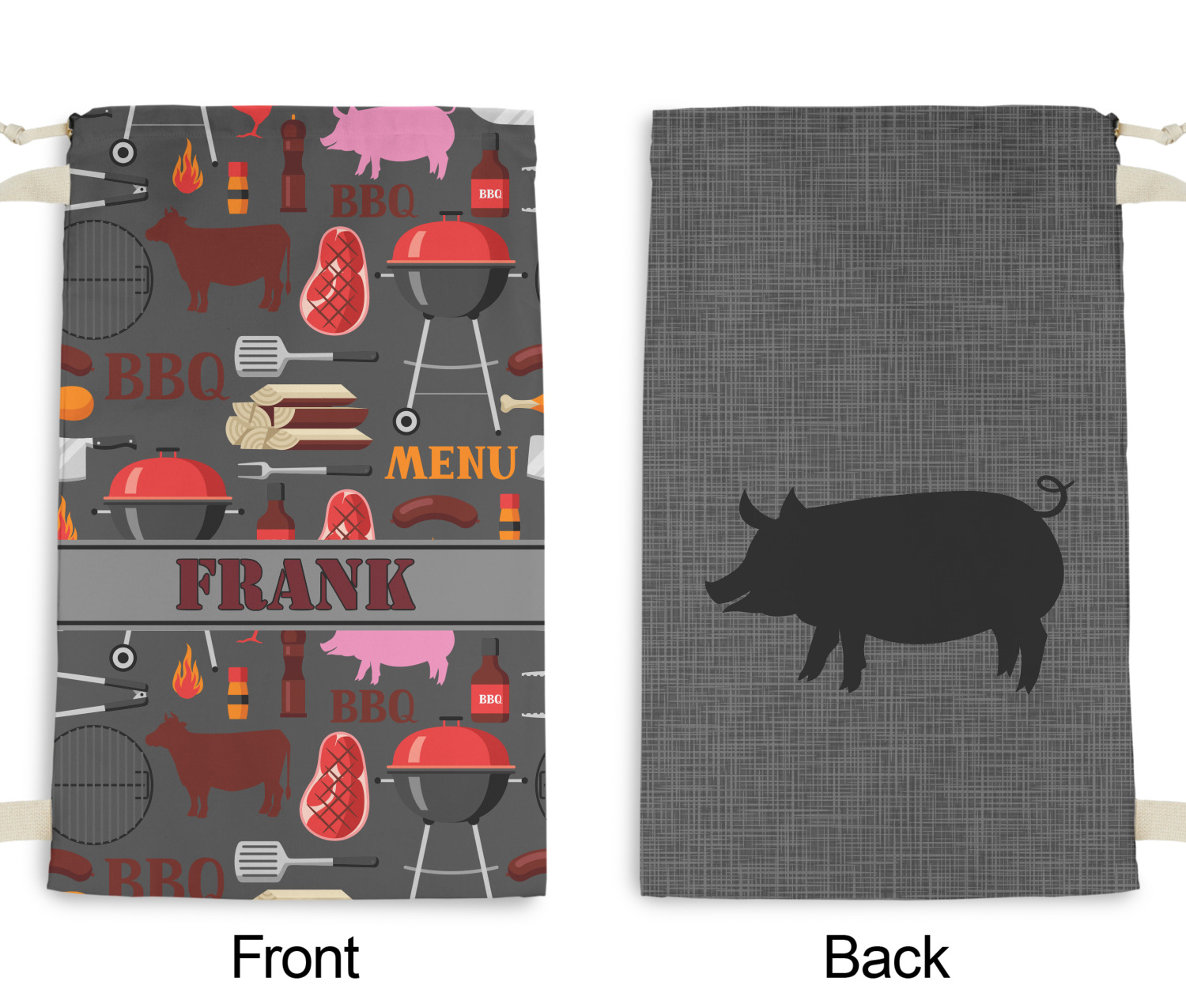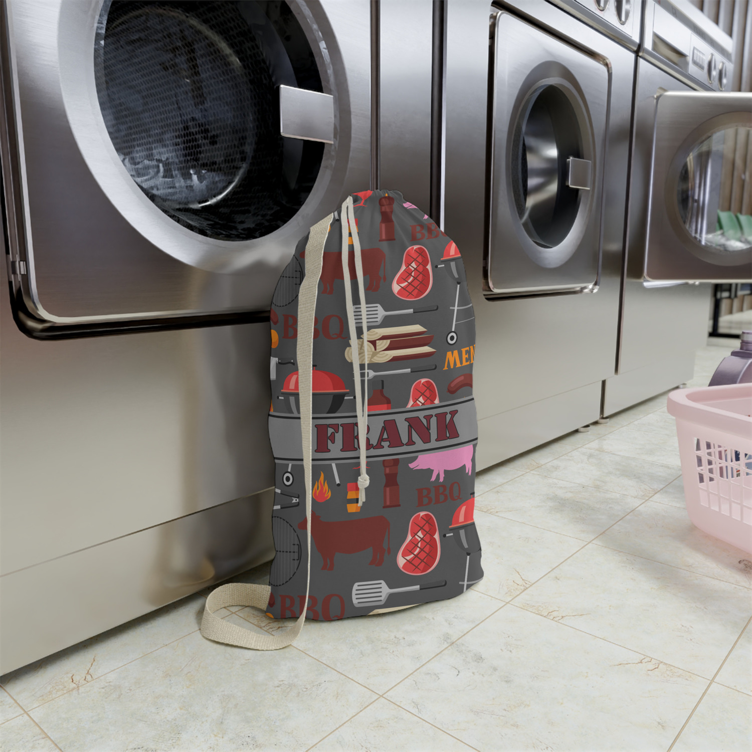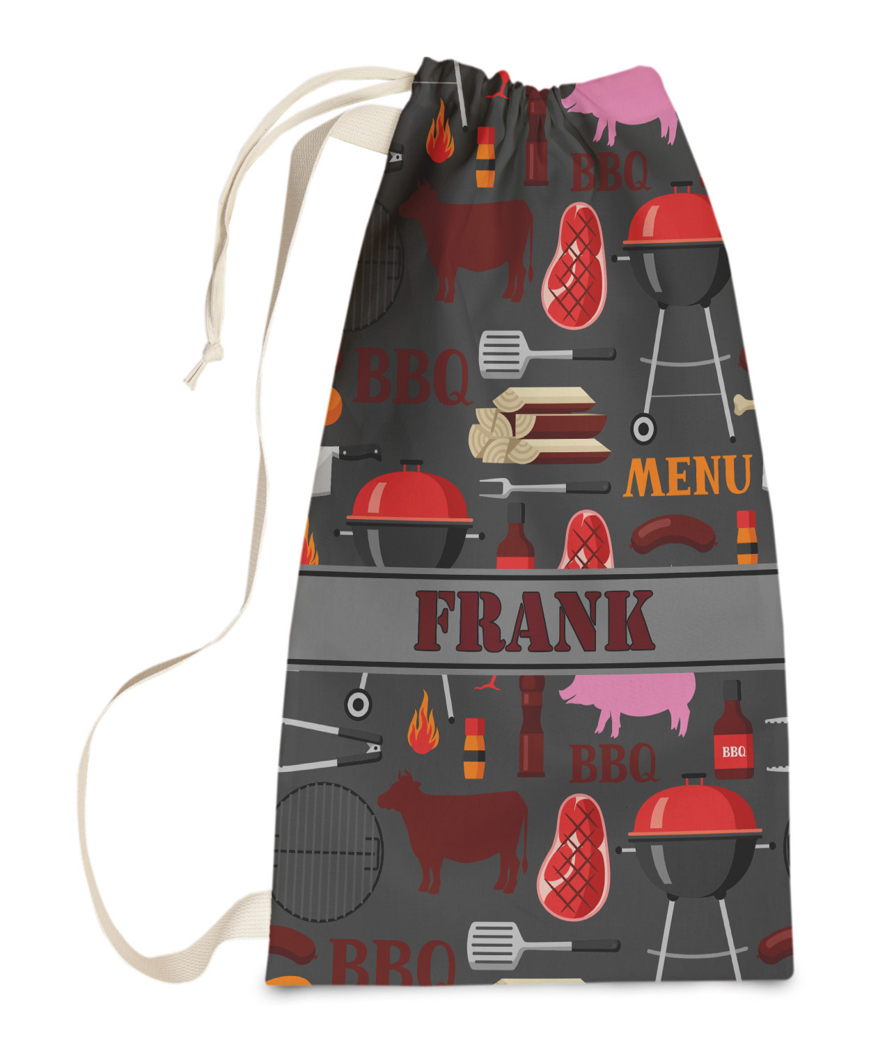 Carry your laundry in style with these customized laundry bags. Available in two sizes, featuring a natural colored woven strap and a cinch cord, these bags hold a lot of clothes or anything else you want to fit in them.