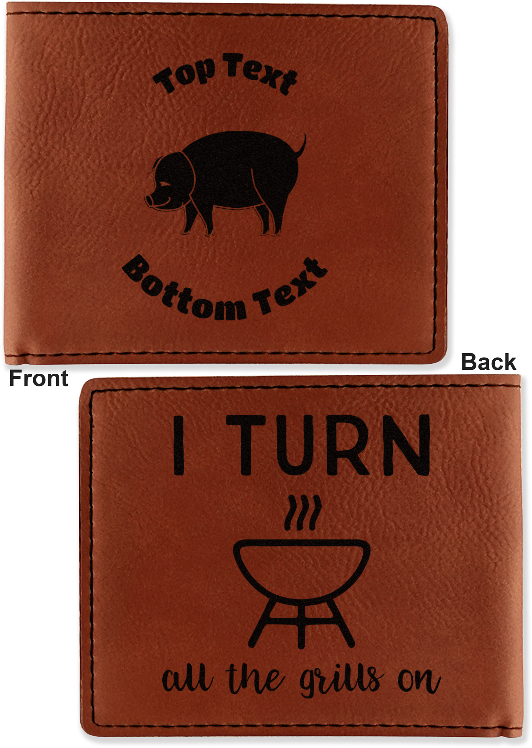 Your bifold wallet will be personalized by laser engraving, which will be a black color on the wallet. Choose a graphic, text, or monogram to personalize your wallet. There are thousands of choices in our design center.