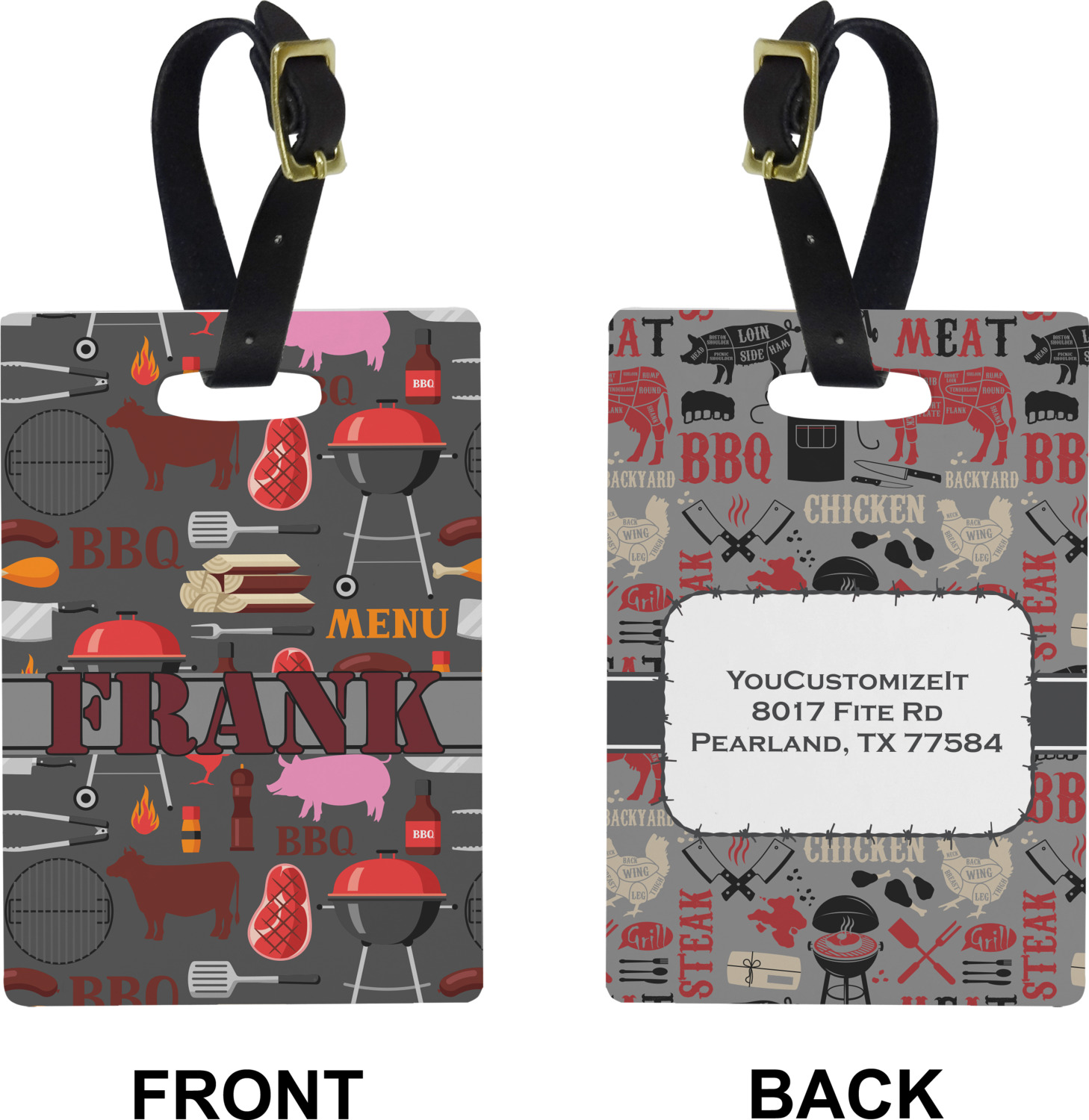These cute luggage tags are made of a fiber-reinforced, UV-resistant plastic, making them waterproof and durable enough for both everyday use and the rugged adventures of any traveler! A leather strap with holes and a buckle is included with your purchase and can be used to attach your custom luggage tag to any suitcase, backpack, or duffel bag. You can design these travel tags as you wish; your customization will be displayed across the front, while the back will show as little or as much personal information as you want.