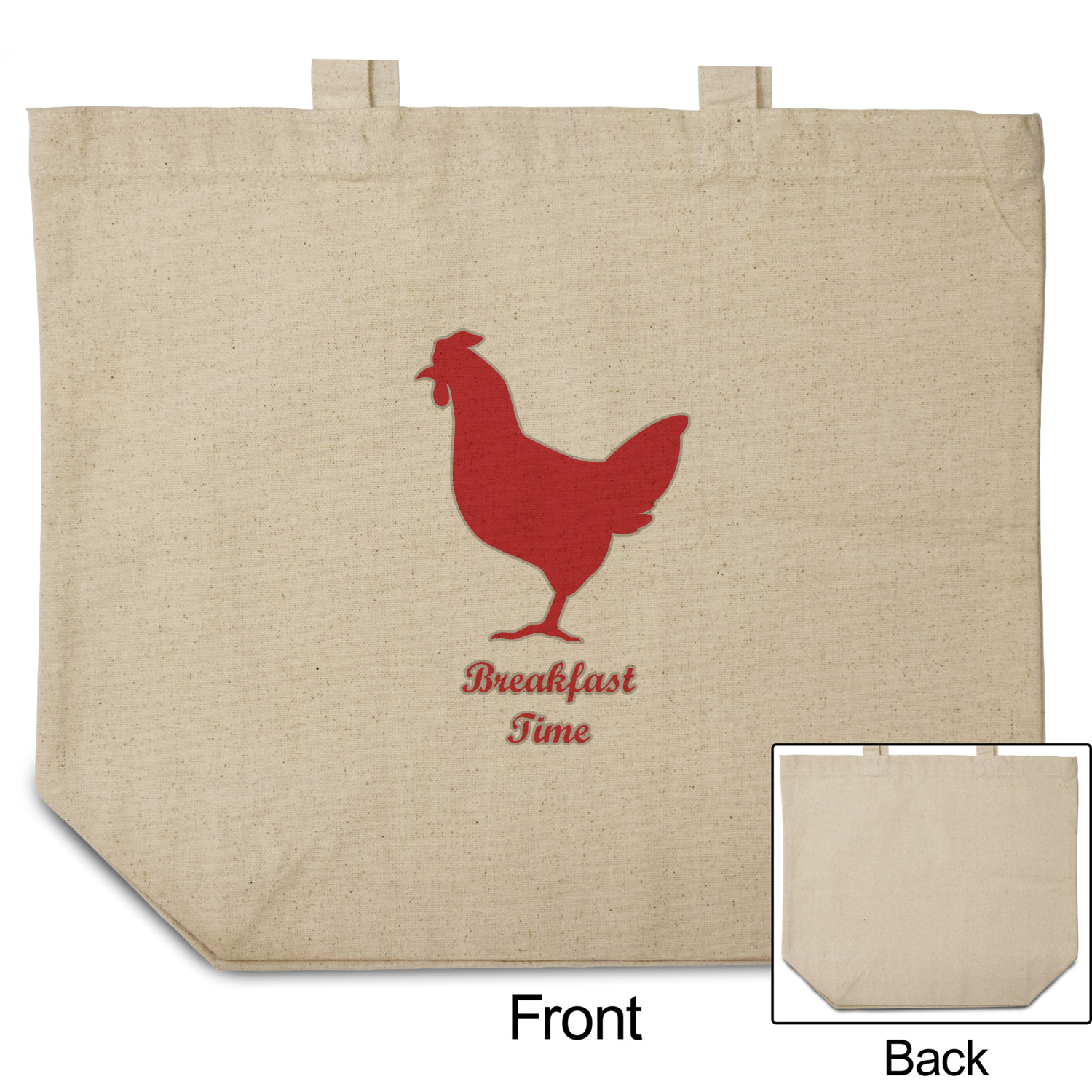 These cotton totes are washable and easy to care for, and they can be folded flat for storage. Your artwork, logo, or photo is printed in full color directly on the cotton tote in the front.