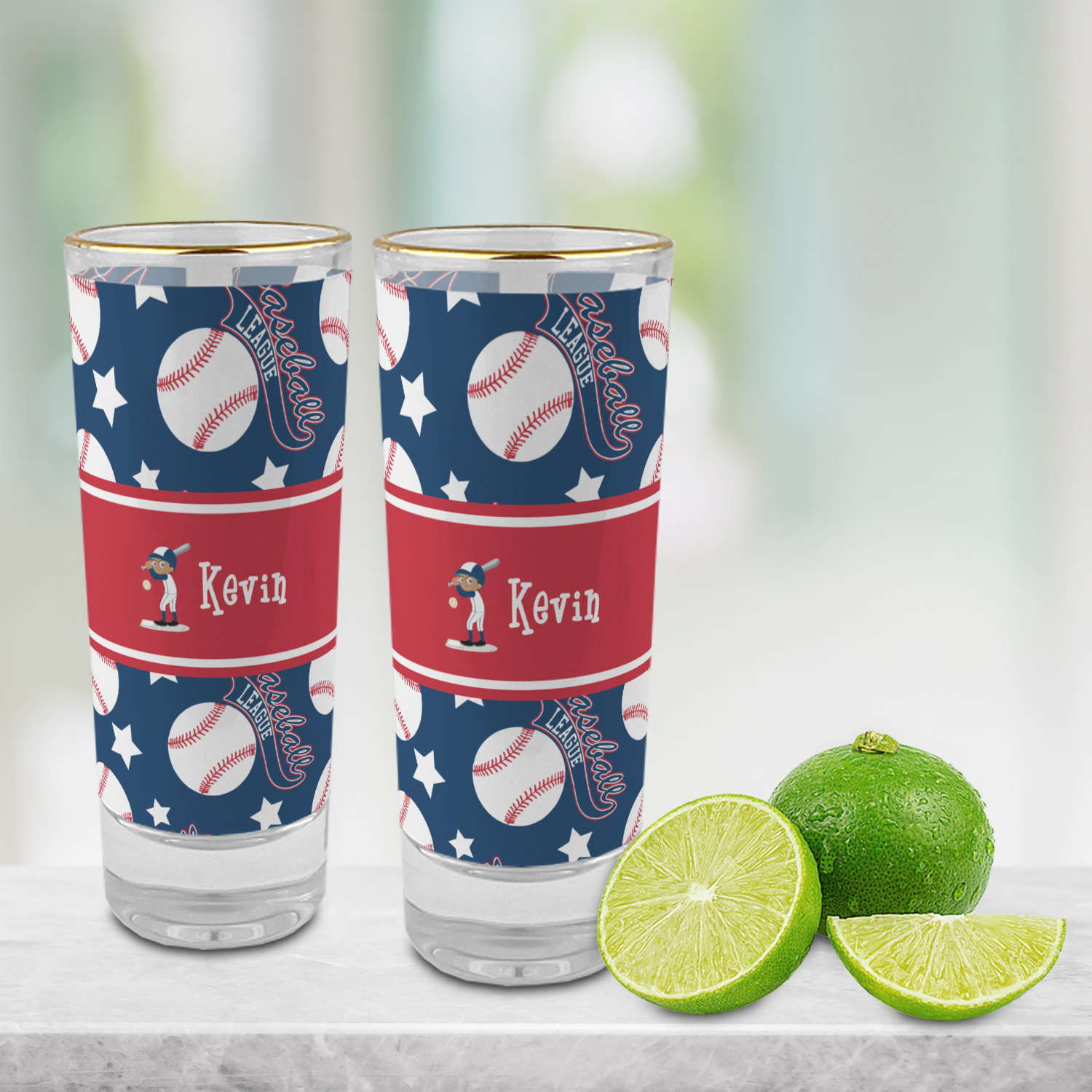Baseball League Designs for 2 oz Shot Glasses - Glass with Gold Rim