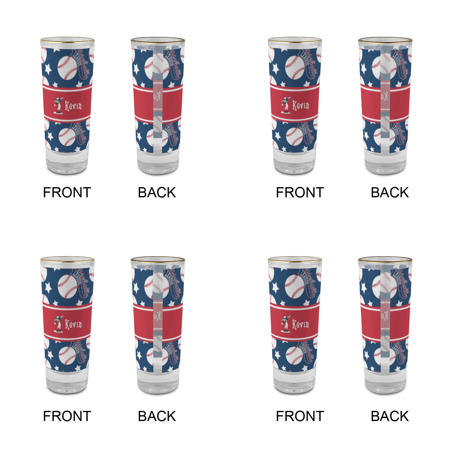 Baseball Player Designs for 2 oz Shot Glasses - Glass with Gold Rim