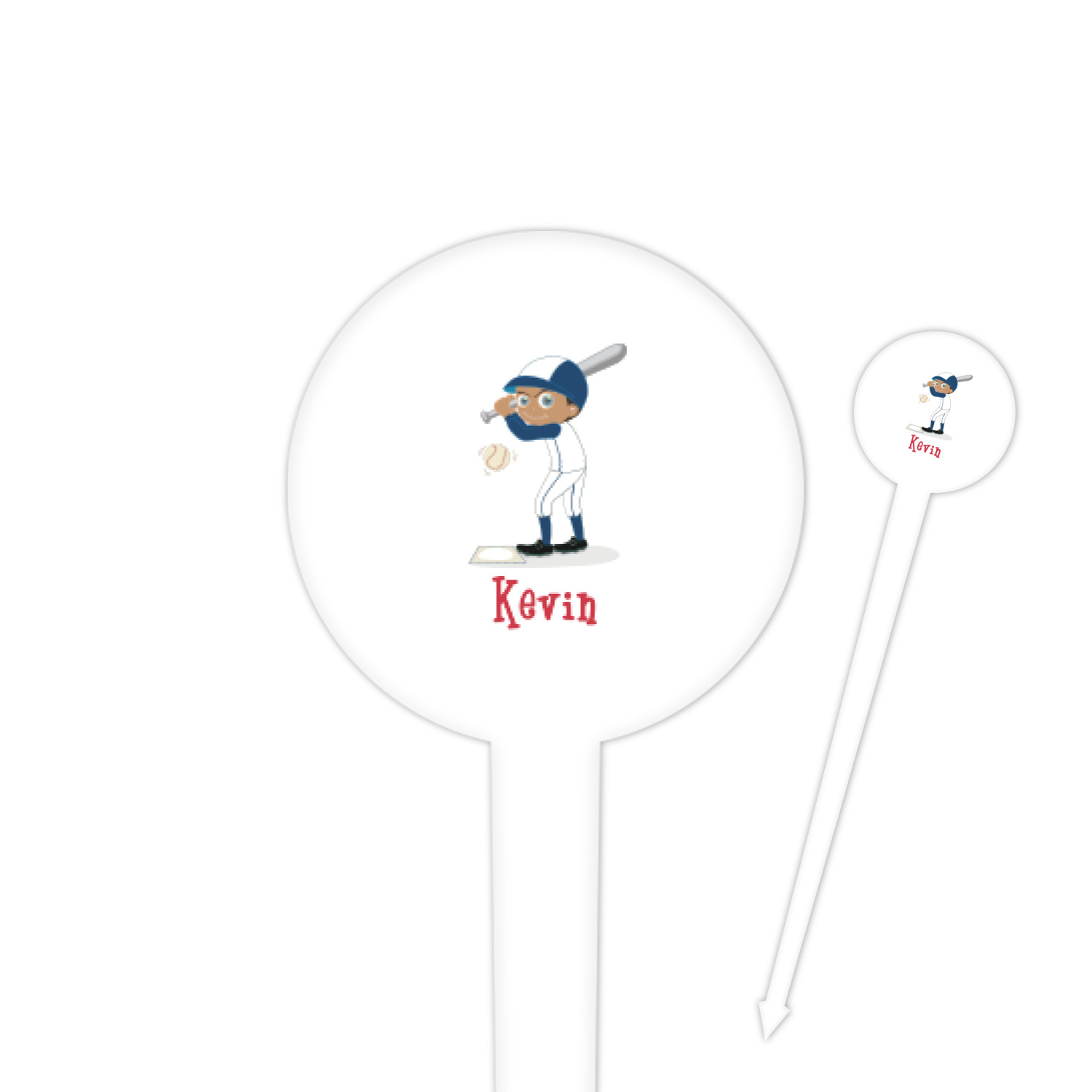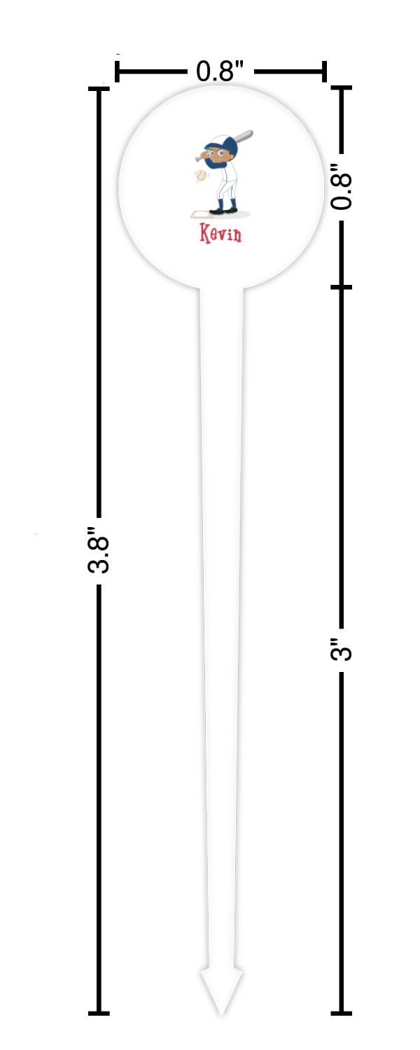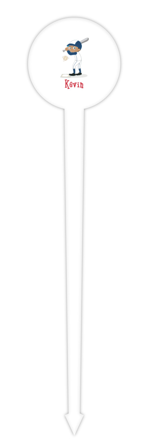 Baseball Player Designs for 4" Round Plastic Food Picks - White - Single-Sided