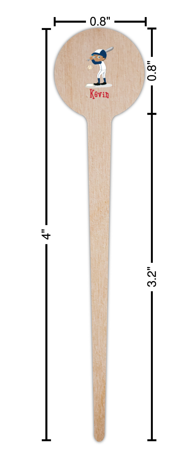 Baseball Player Designs for 4" Round Wooden Food Picks - Single-Sided