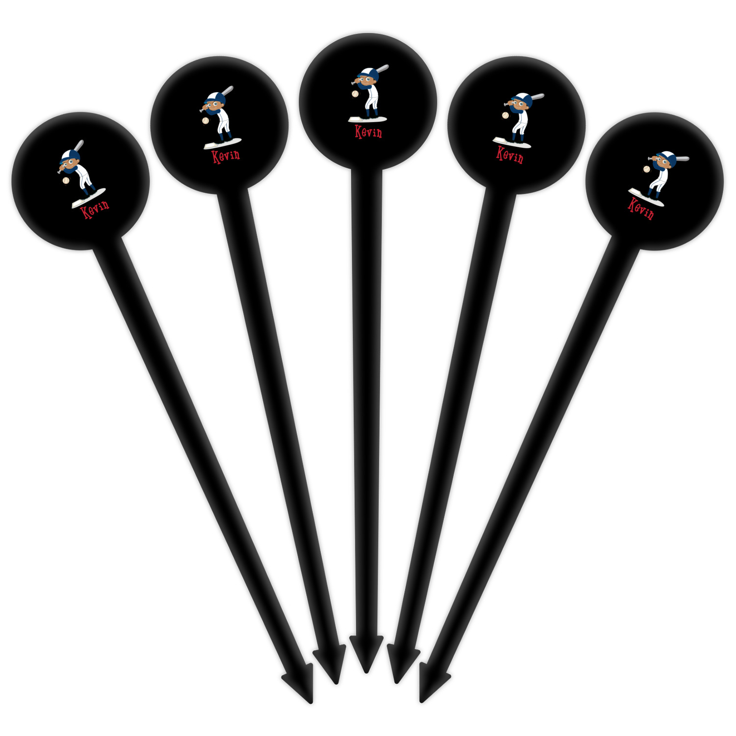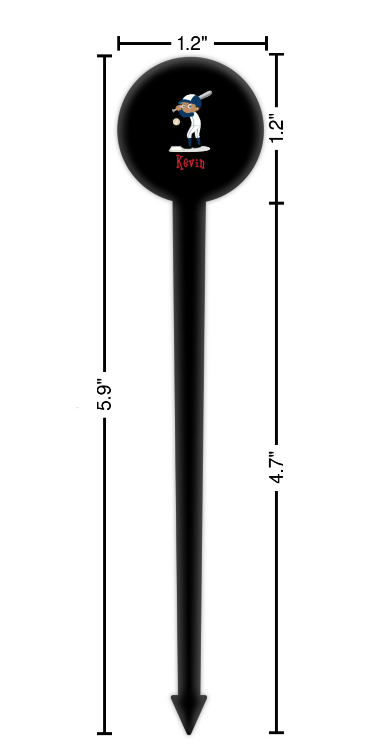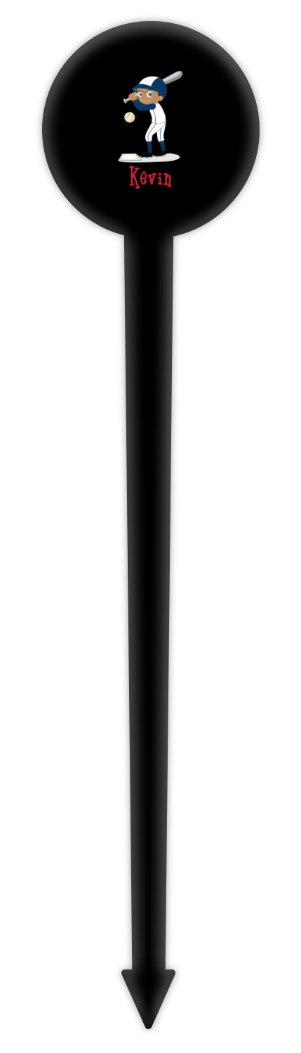 Baseball Player Designs for 6" Round Plastic Food Picks - Black - Single-Sided