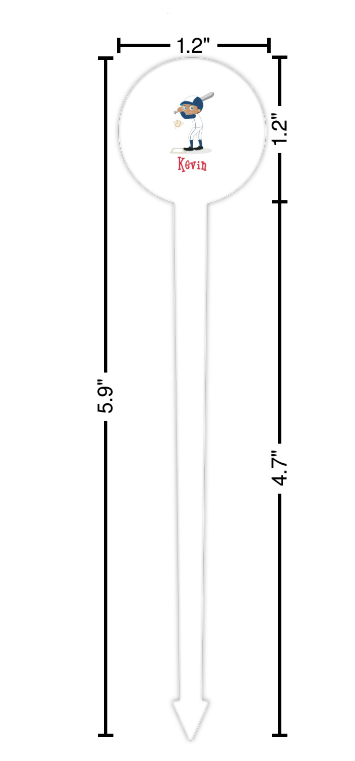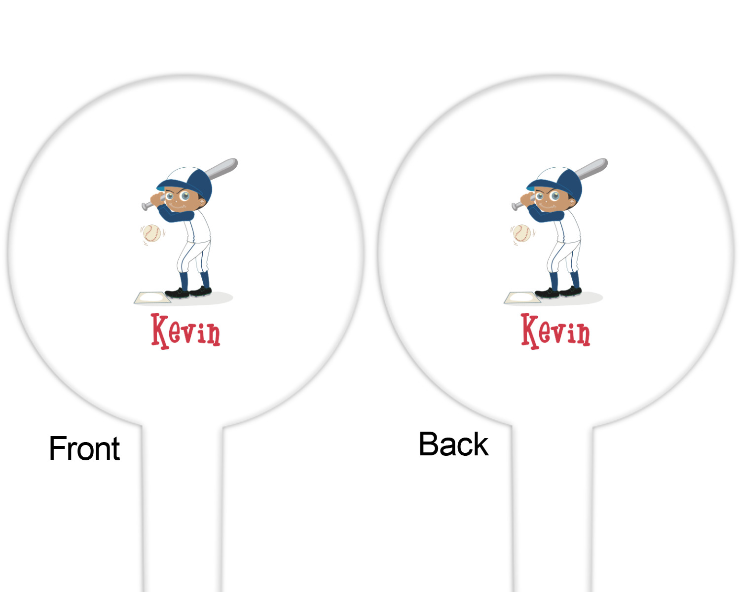 Baseball Player Designs for 6" Round Plastic Food Picks - White - Double-Sided