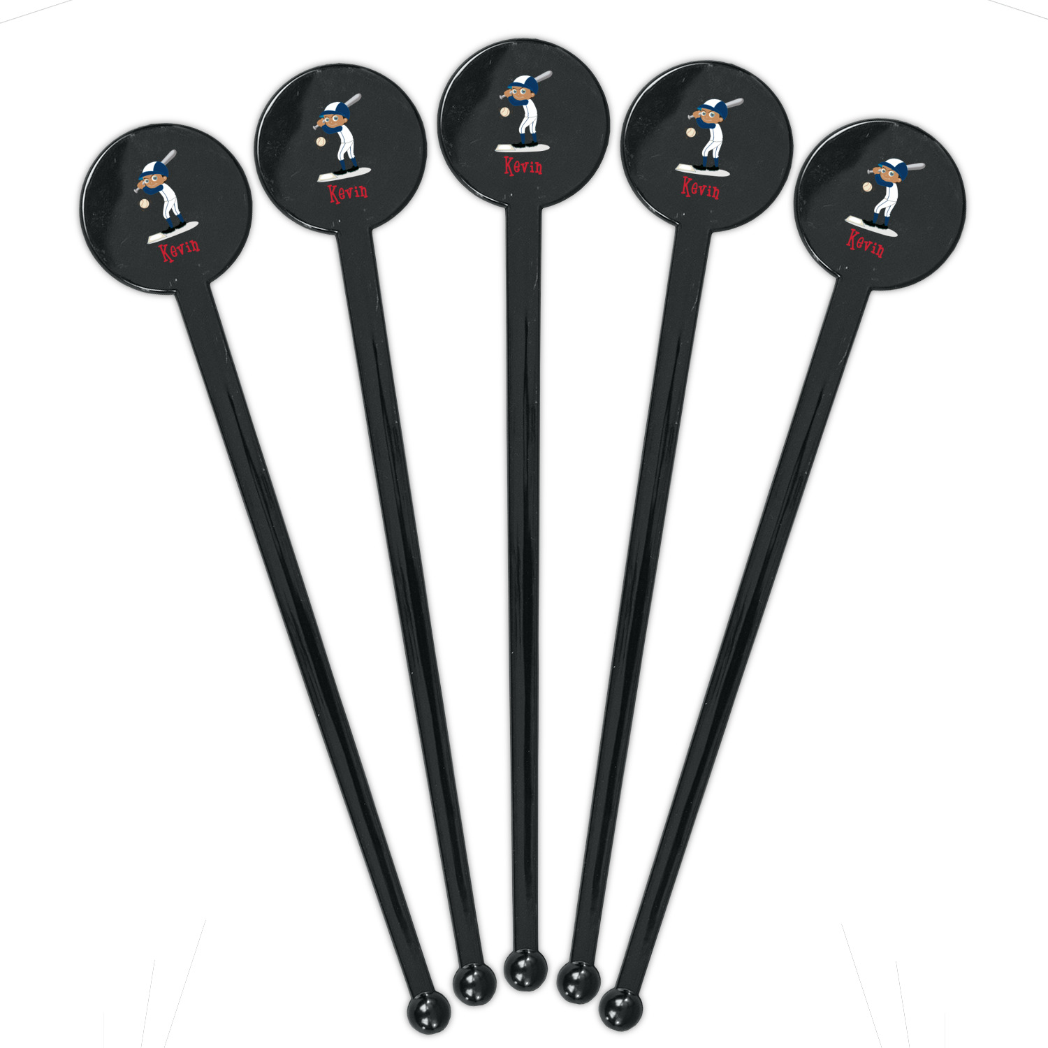 Baseball League Designs for 7" Round Plastic Stir Sticks - Black - Single-Sided