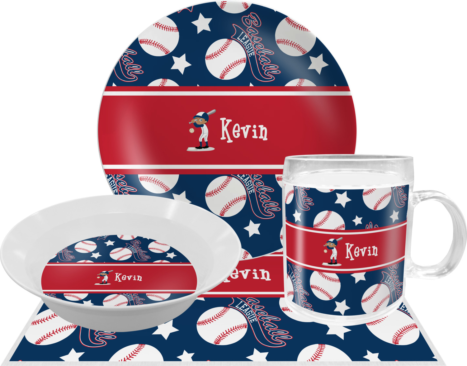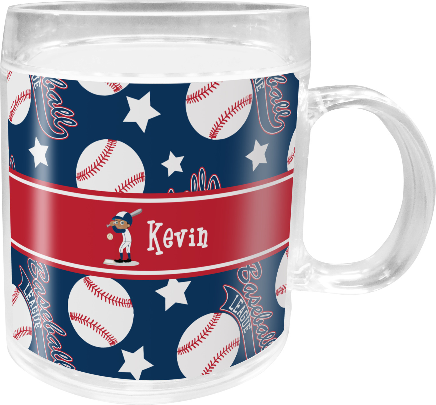 This baseball design is sure to please any baseball fan. The background in classic blue, with baseballs, baseball league banner and stars in red & white make this a classic color scheme for any boy. We have chosen to customize it with a red ribbon and have added a baseball player with his name as the personalization. The uniform on the baseball can be customized to his team colors. You can also customize his hair, skin and eye color as well.