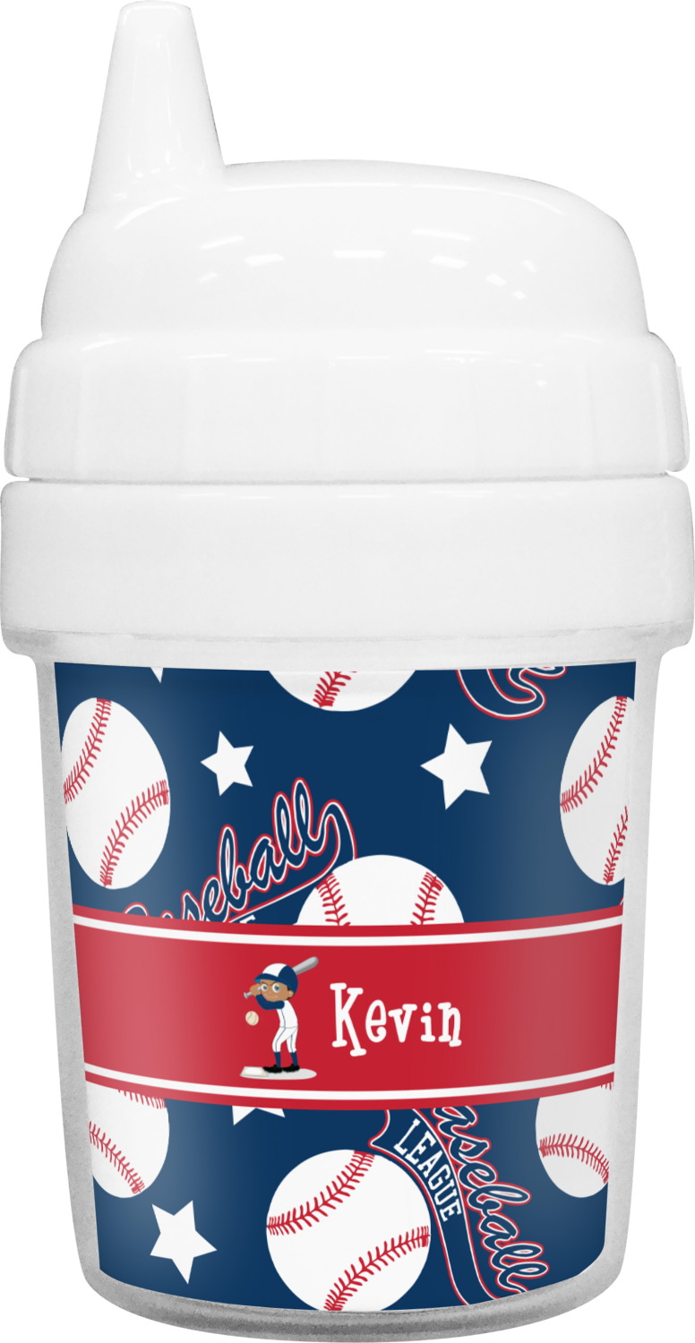Our toddler cups are free of BPA, and have a twist-open lid so that you can easily fill and clean these cups for your young ones. Each cup also comes with a sippy nozzle to reduce spills. We offer these custom sippy cups in two different sizes; we have a baby sippy cup that holds 5 ounces, and a toddler sippy cup that holds 10 ounces. Your customization is printed on a premium glossy media insert that is placed within these toddler drinking cups.