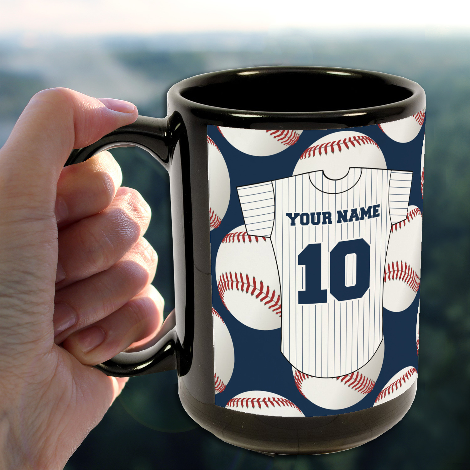 This design with baseballs in the background and a baseball jersey for name & number personalization will perfect for the baseball fanatic. The colors can all be changed - so you can change the colors to match your team color - the background color, the color of the jersey sleeves, the body and even the stripes' color can be changed!