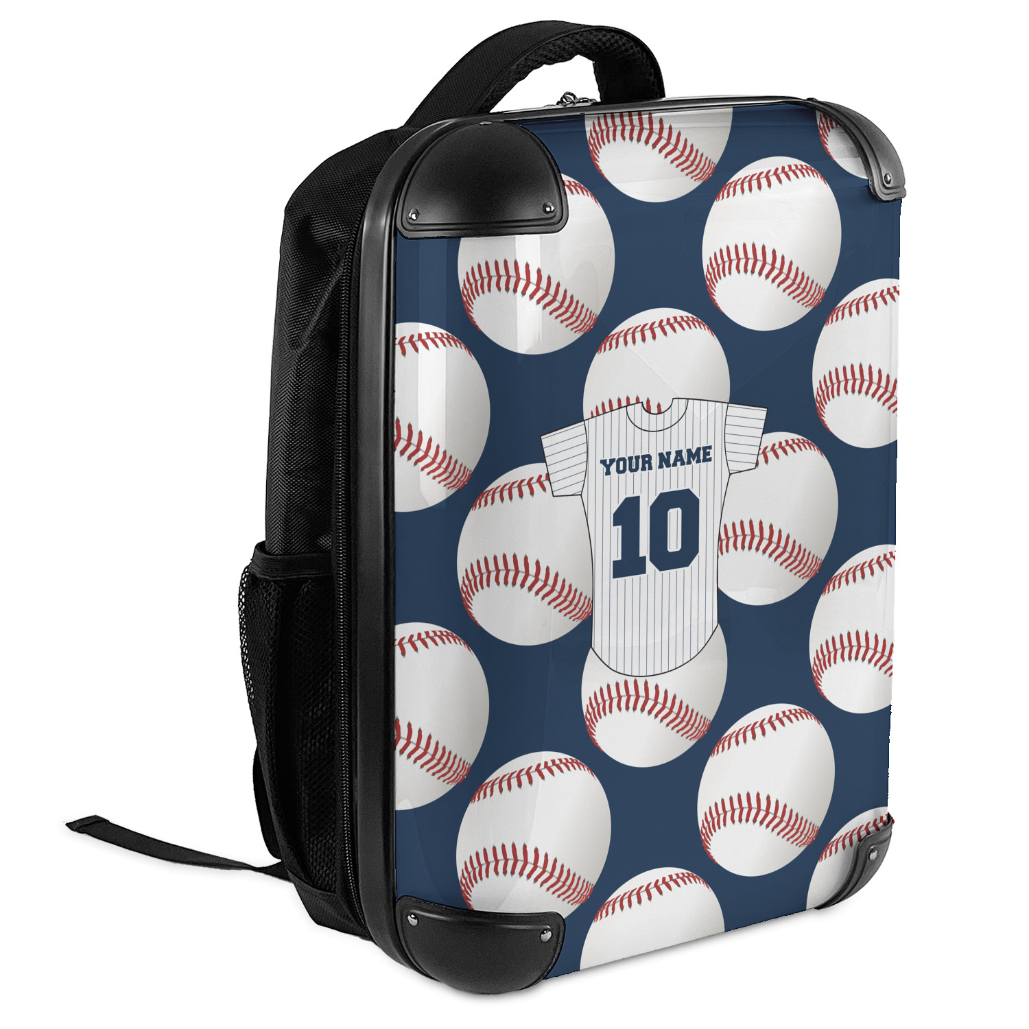 This design with baseballs in the background and a baseball jersey for name & number personalization will perfect for the baseball fanatic. The colors can all be changed - so you can change the colors to match your team color - the background color, the color of the jersey sleeves, the body and even the stripes' color can be changed!