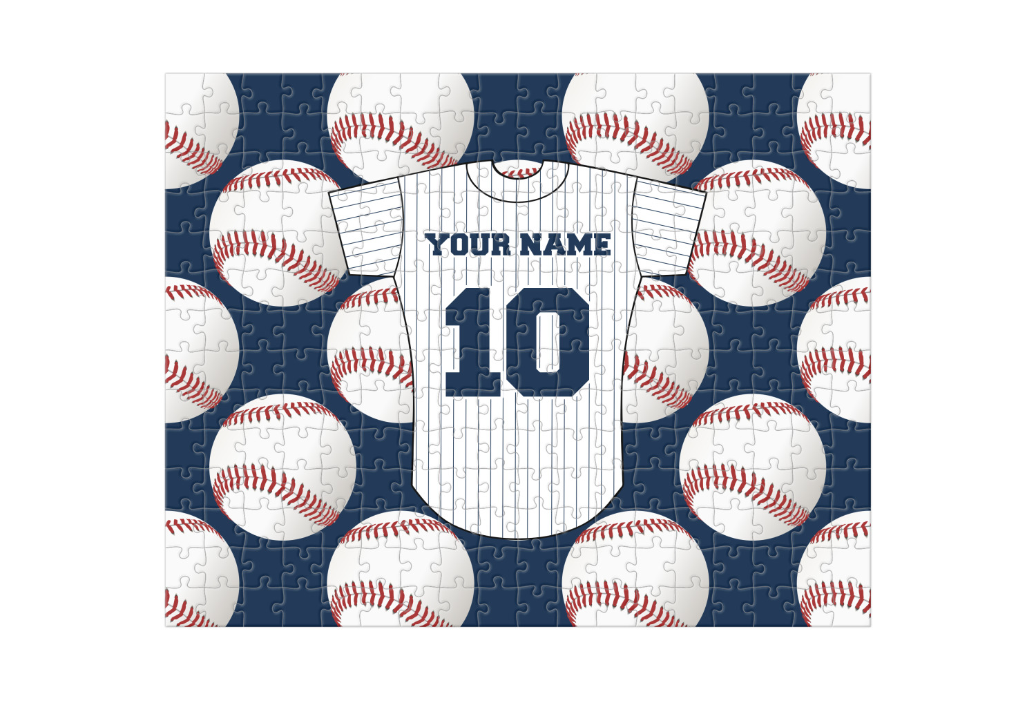 This design with baseballs in the background and a baseball jersey for name & number personalization will perfect for the baseball fanatic. The colors can all be changed - so you can change the colors to match your team color - the background color, the color of the jersey sleeves, the body and even the stripes' color can be changed!