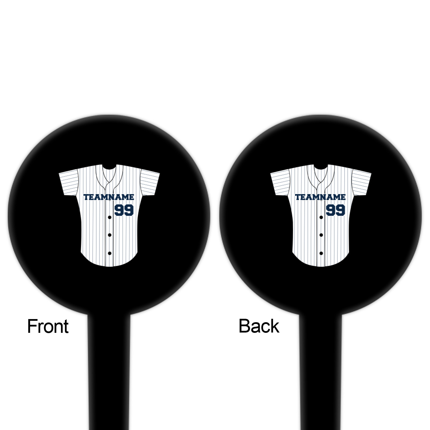 The personalization we have chosen is name and number on the back of the baseball jersey. We have also used the front of the jersey for the team name in the coordinating design. You have the choice of using the back as we have, or the front of the jersey or use both and add the team name to the personalization.