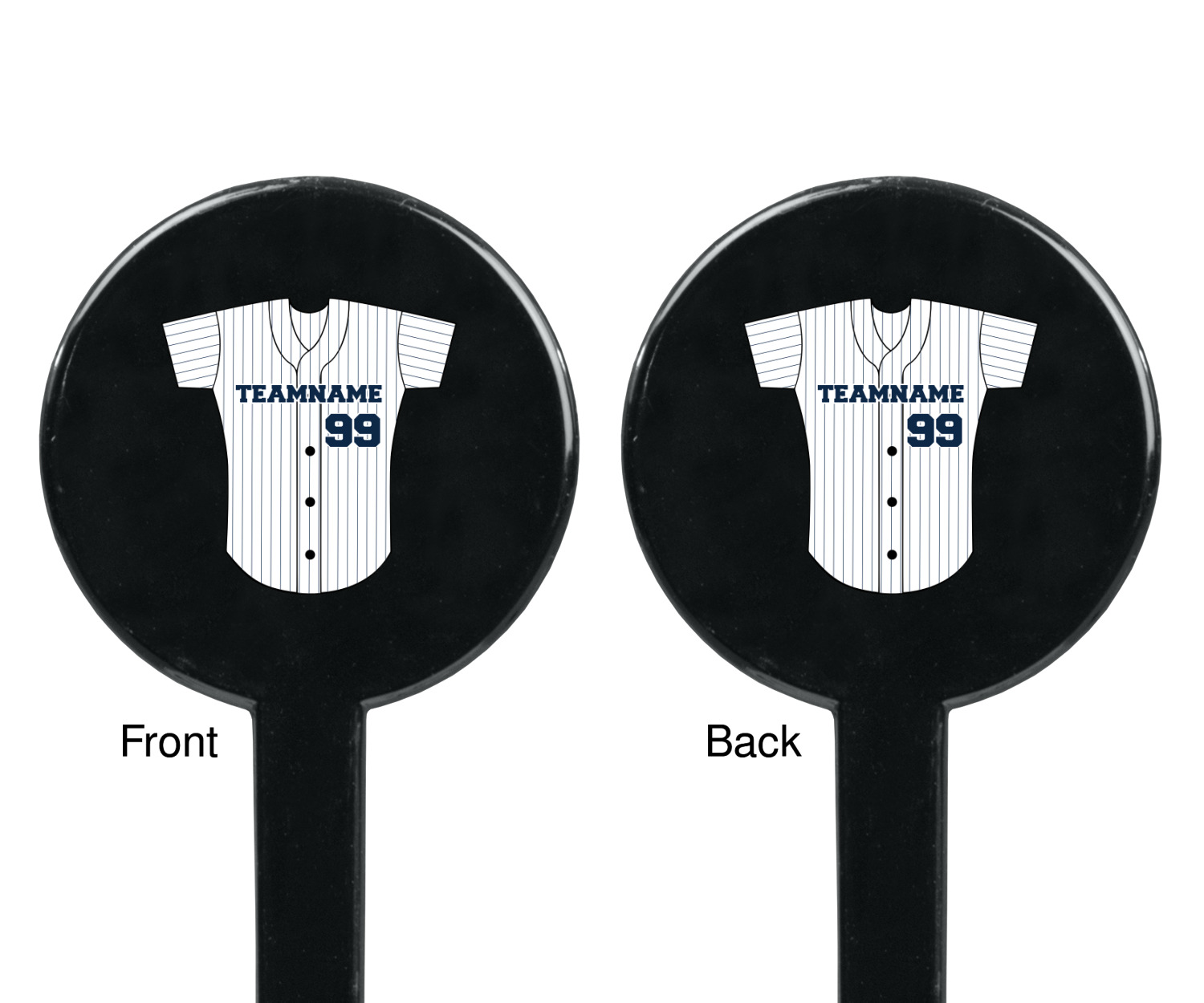The personalization we have chosen is name and number on the back of the baseball jersey. We have also used the front of the jersey for the team name in the coordinating design. You have the choice of using the back as we have, or the front of the jersey or use both and add the team name to the personalization.