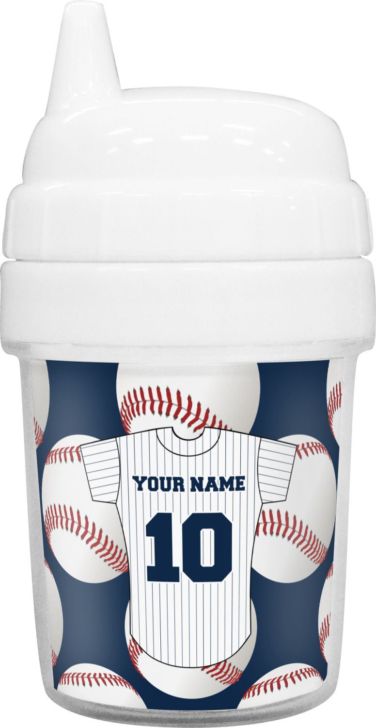 Our toddler cups are free of BPA, and have a twist-open lid so that you can easily fill and clean these cups for your young ones. Each cup also comes with a sippy nozzle to reduce spills. We offer these custom sippy cups in two different sizes; we have a baby sippy cup that holds 5 ounces, and a toddler sippy cup that holds 10 ounces. Your customization is printed on a premium glossy media insert that is placed within these toddler drinking cups.