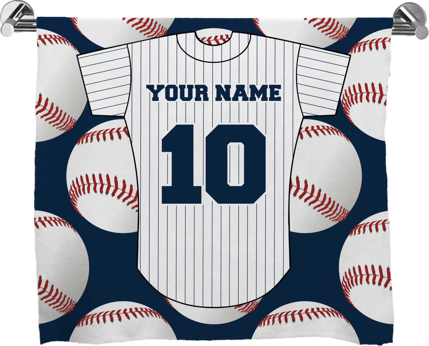 These customized bath towels are slightly larger than your standard towel and are the ideal size for wrapping around your body. They measure approximately 60" x 30". Your customization is displayed across the entire front face of the towel, while the back is white.