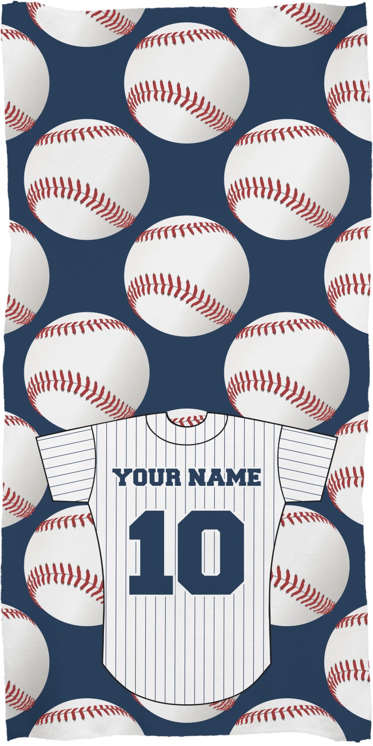 This design with baseballs in the background and a baseball jersey for name & number personalization will perfect for the baseball fanatic. The colors can all be changed - so you can change the colors to match your team color - the background color, the color of the jersey sleeves, the body and even the stripes' color can be changed!