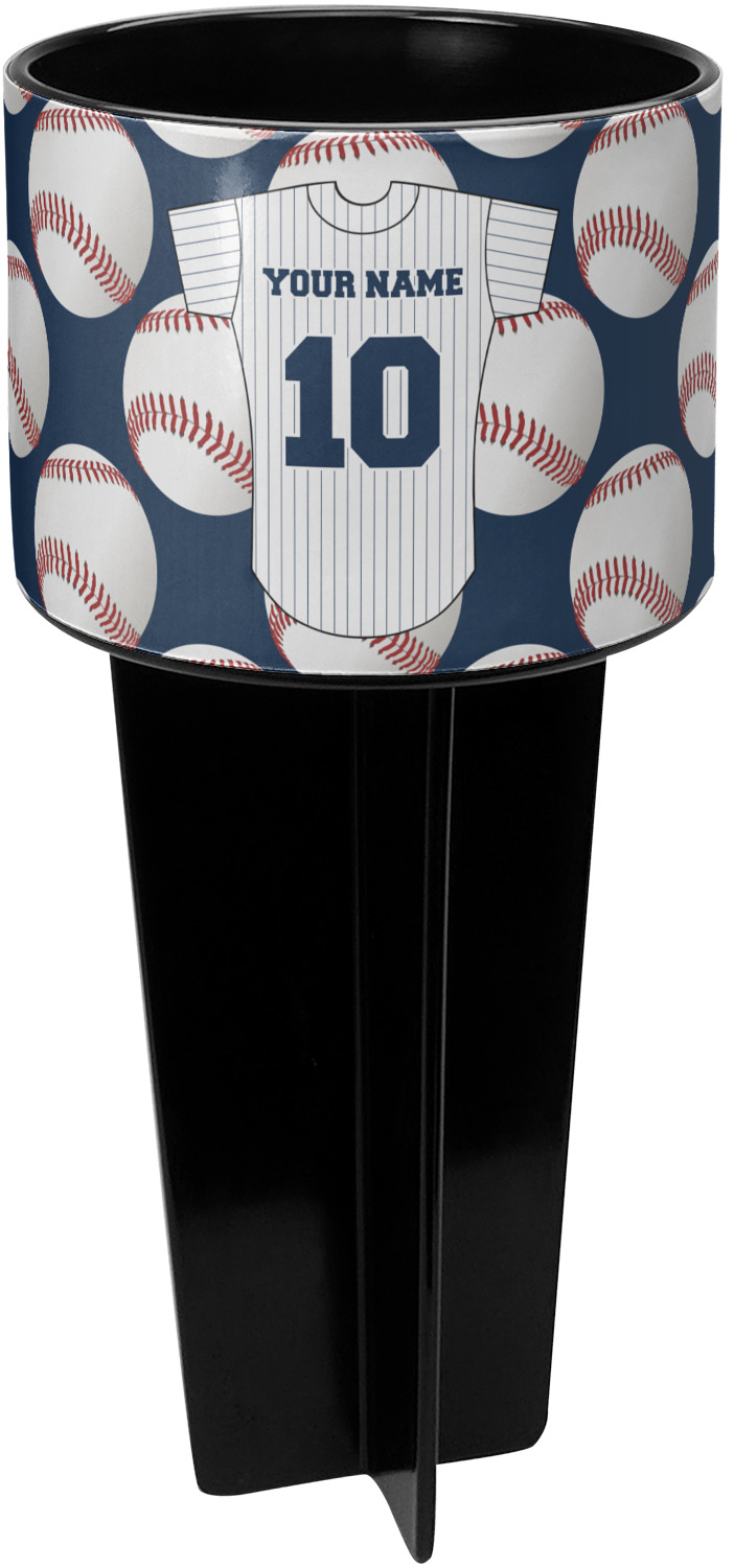 This cup holder has a large stake at its bottom that anchors it to the sand or ground below, while the cup holder rests above the stake. The entire drink holder is made of durable plastic and displays your customization around the cup holder portion. We sell these personalized beach spikers in two different colors: black and white.