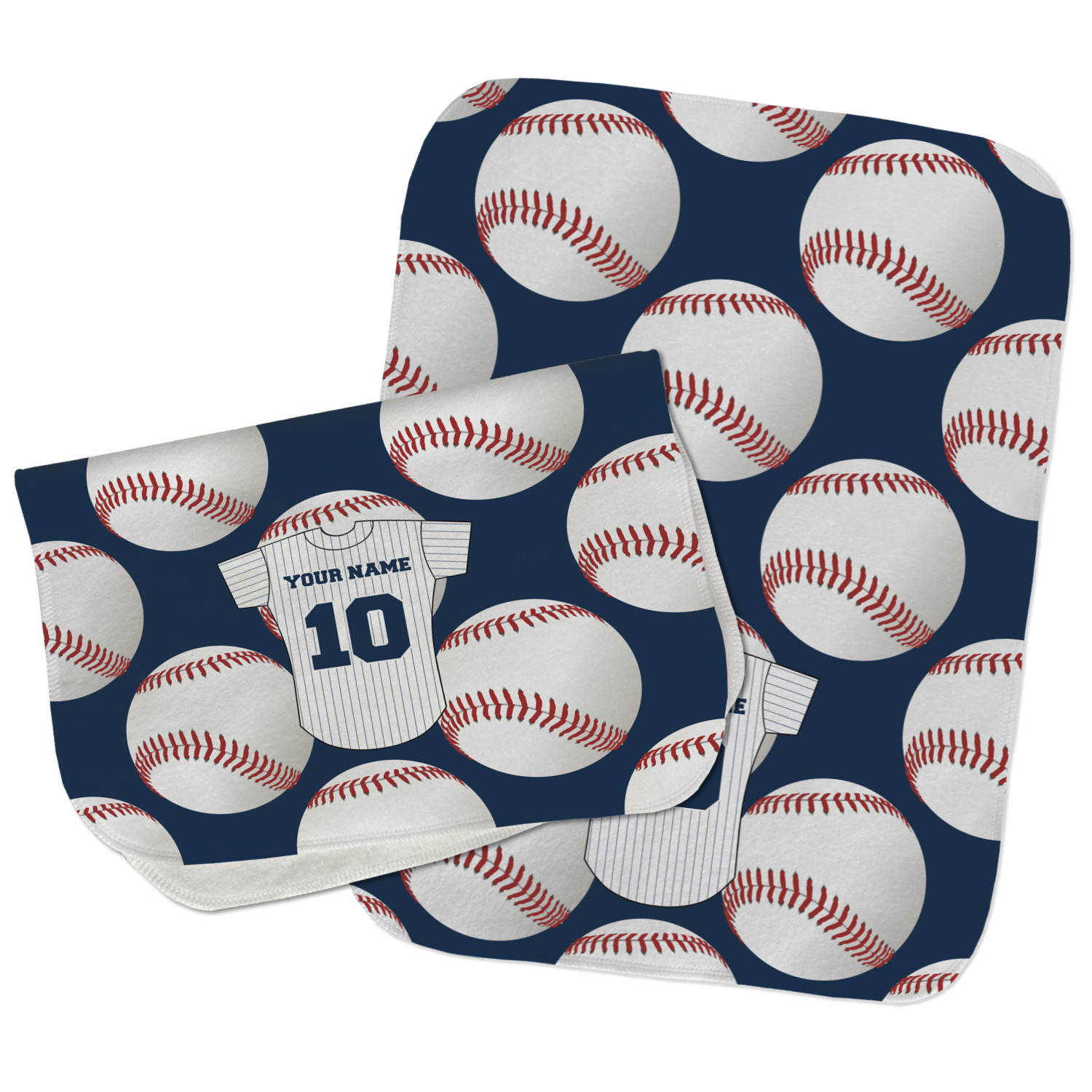 Choose your baby burp cloth from our two styles - Fleece (rectangular) or Microfiber Velour (peanut shape). The lightweight and absorbent design makes each burp cloth multipurpose; use them as a burp pad, a lap pad, a changing table, or a spare cloth to clean up any baby mess. Your customization is displayed across the front with baby-safe ink to ensure extra comfort with a white backing.