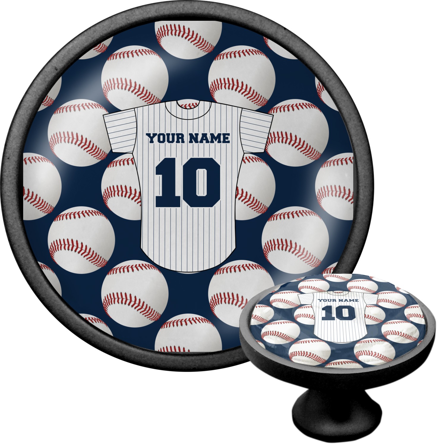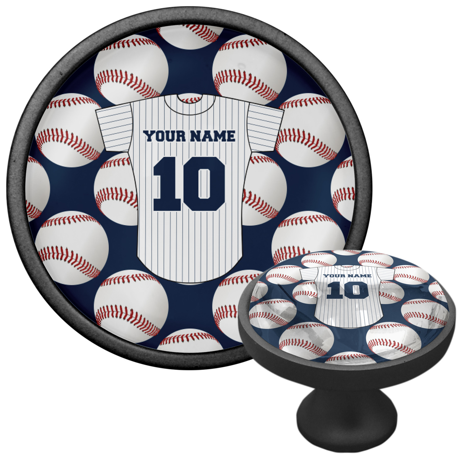 We sell these cabinet pulls in two different colors to better match your room's color scheme. We offer an oil-rubbed bronze base that is black in color, and a satin nickel option, which has a silver color. Your design is displayed across a high gloss vinyl insert that is placed on top of these cabinet handles. We then place a 1 inch thick glass cabochon atop the design, which seals the cabinet knob and makes the colors of your customization stand out. These custom cabinet knobs are approximately 1.3 inches in diameter. Your purchase includes a 1 inch screw that can be used to mount the knob to any cabinet in your home.
