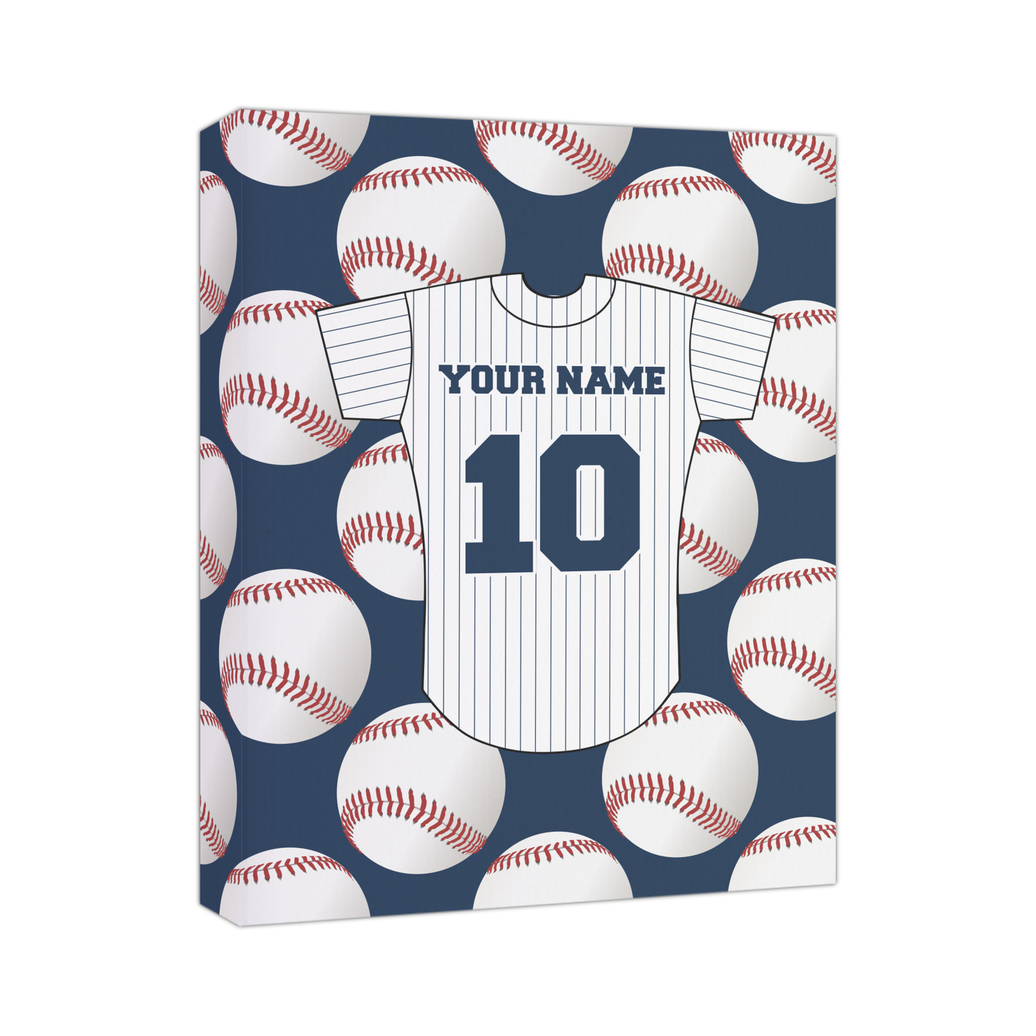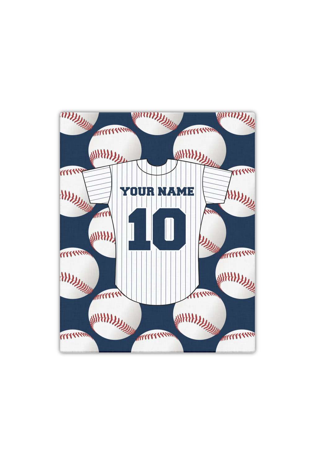 This design with baseballs in the background and a baseball jersey for name & number personalization will perfect for the baseball fanatic. The colors can all be changed - so you can change the colors to match your team color - the background color, the color of the jersey sleeves, the body and even the stripes' color can be changed!