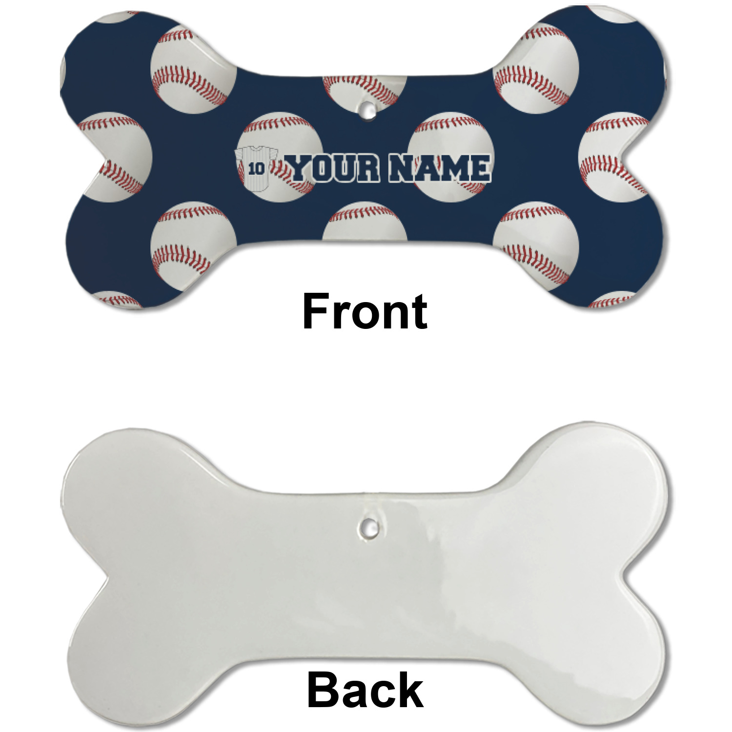 The personalization we have chosen is name and number on the back of the baseball jersey. We have also used the front of the jersey for the team name in the coordinating design. You have the choice of using the back as we have, or the front of the jersey or use both and add the team name to the personalization.
