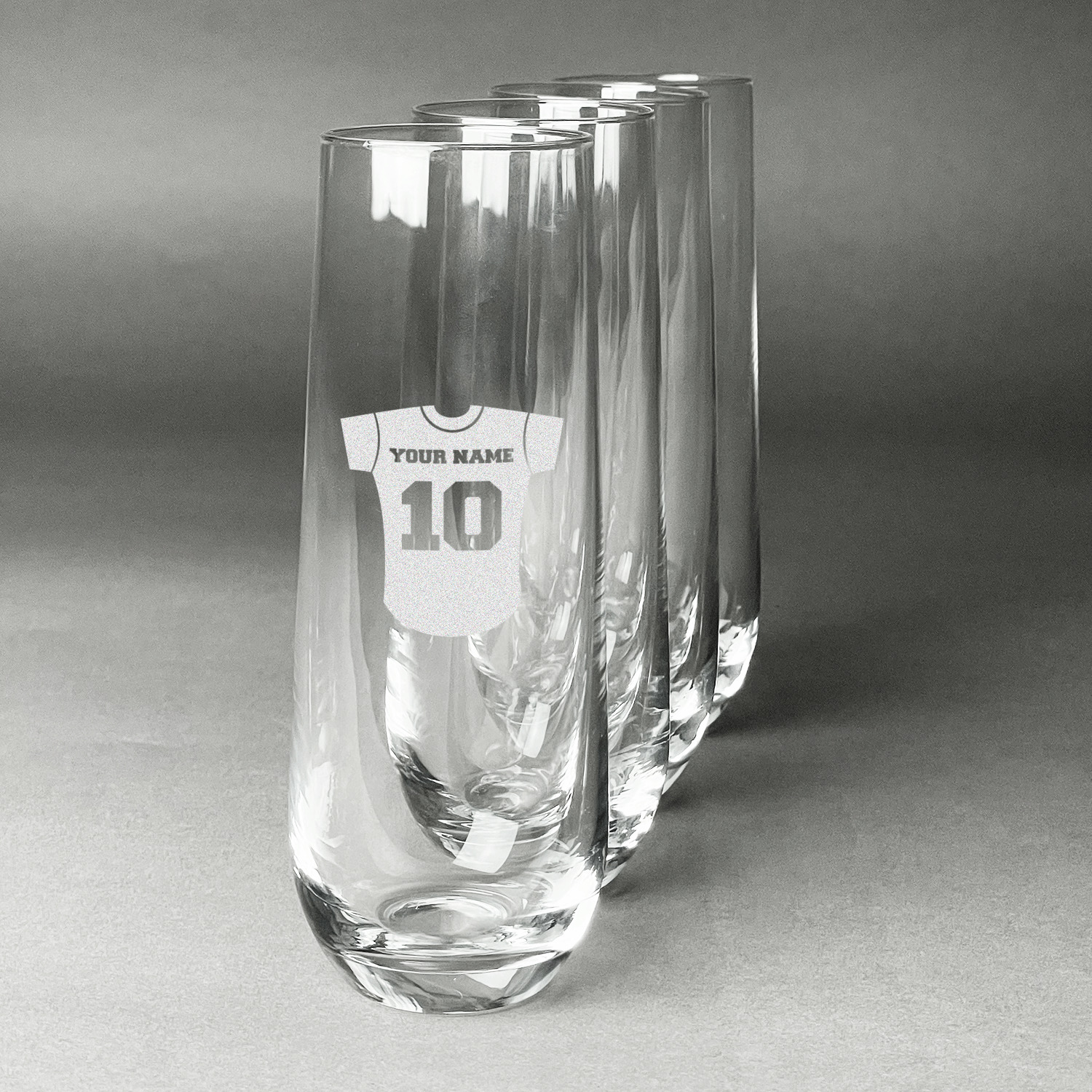 Design your custom stemless champagne flutes and we will then laser engrave your unique design on them for you. Whether they are a special gift for a bride and groom, for your New Years Eve party, or a bachelorette party you are sure to be able to add a custom personalized touch to make them perfect for the occasion.