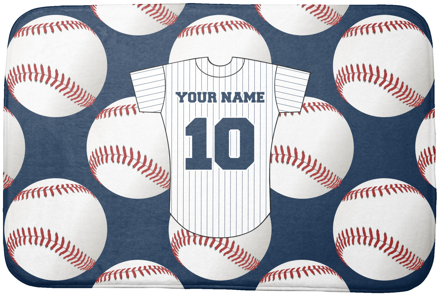 This design with baseballs in the background and a baseball jersey for name & number personalization will perfect for the baseball fanatic. The colors can all be changed - so you can change the colors to match your team color - the background color, the color of the jersey sleeves, the body and even the stripes' color can be changed!