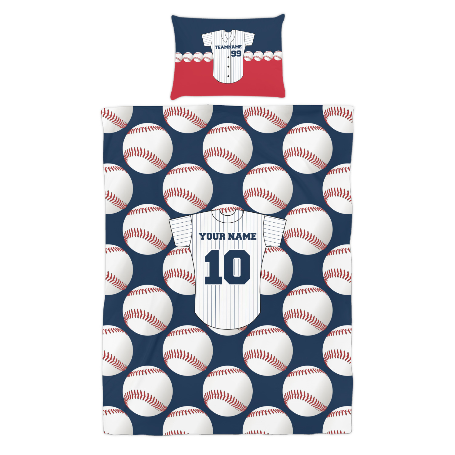 This design with baseballs in the background and a baseball jersey for name & number personalization will perfect for the baseball fanatic. The colors can all be changed - so you can change the colors to match your team color - the background color, the color of the jersey sleeves, the body and even the stripes' color can be changed!