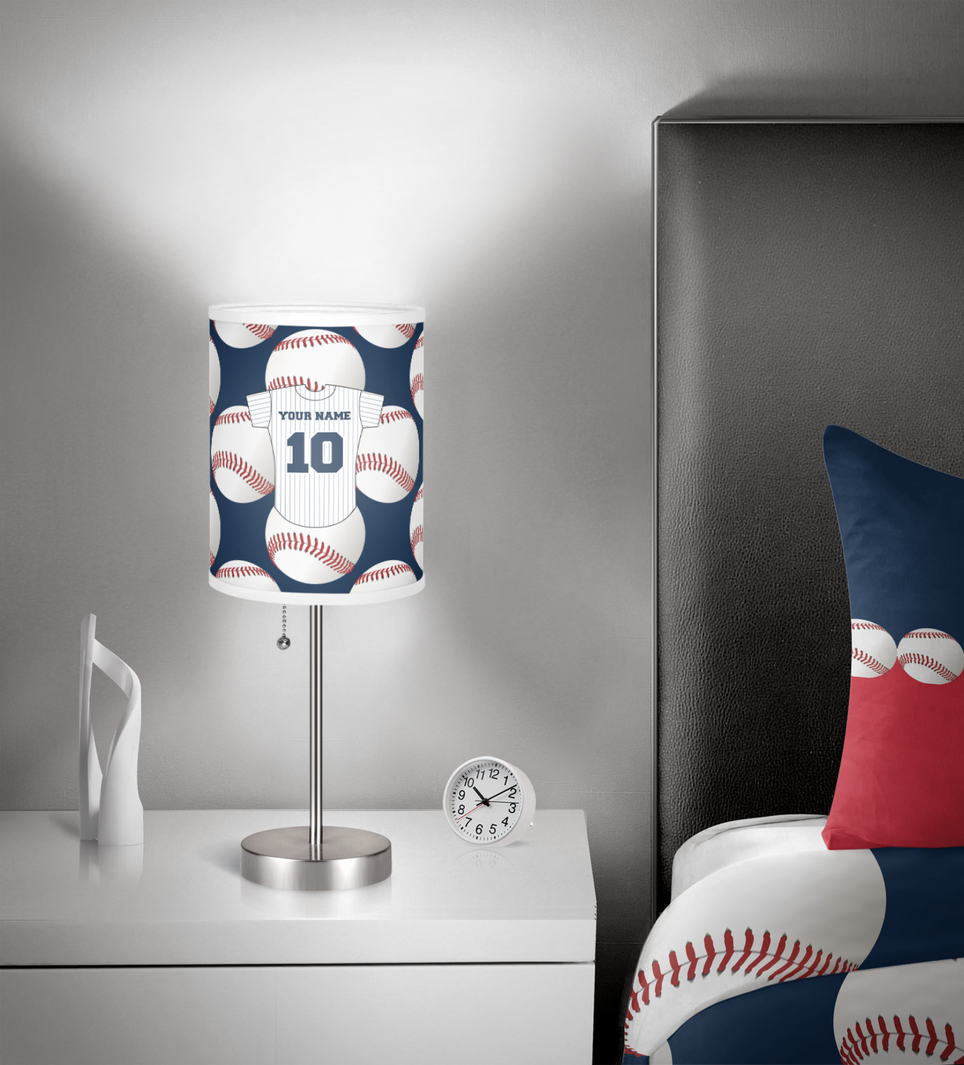 This design with baseballs in the background and a baseball jersey for name & number personalization will perfect for the baseball fanatic. The colors can all be changed - so you can change the colors to match your team color - the background color, the color of the jersey sleeves, the body and even the stripes' color can be changed!