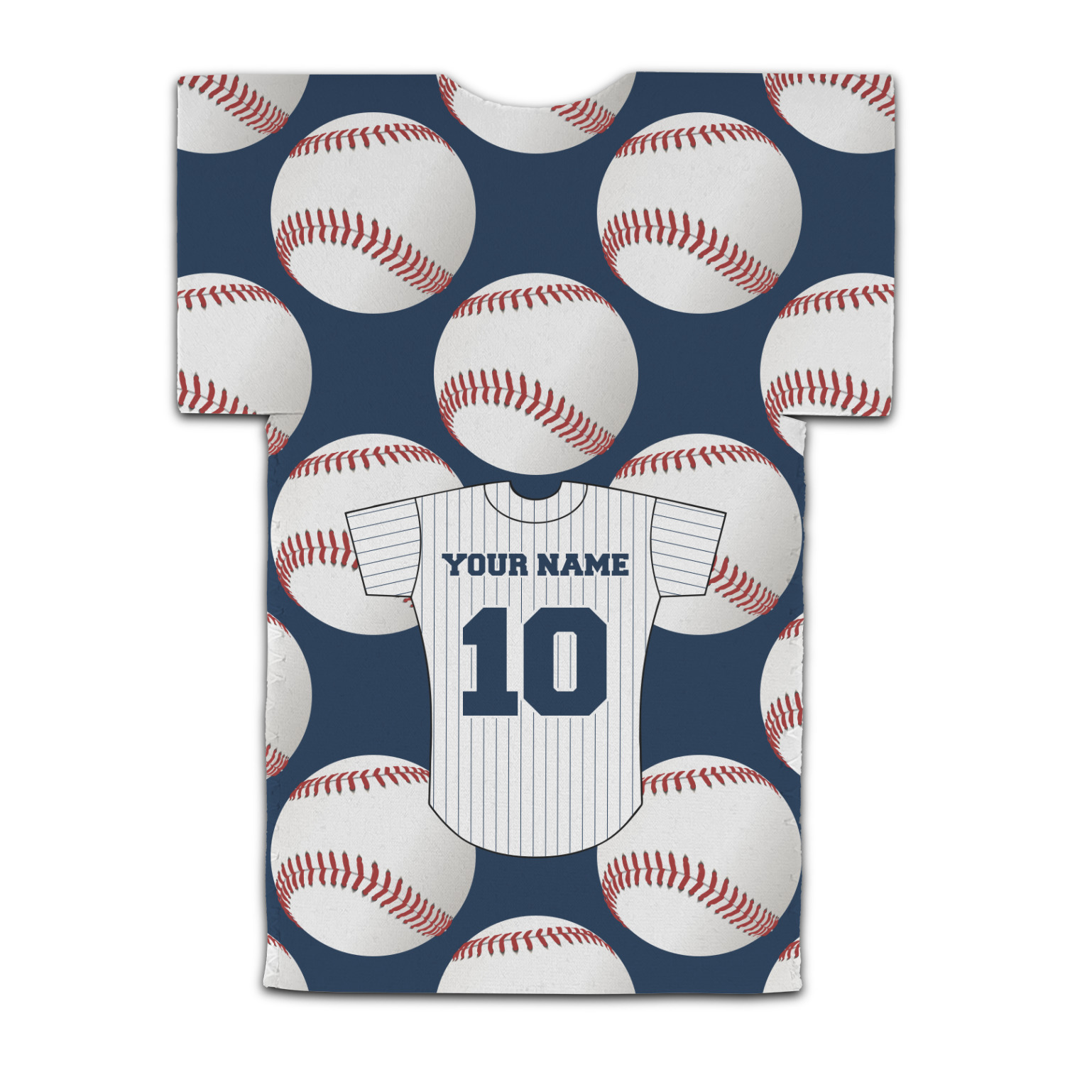 This design with baseballs in the background and a baseball jersey for name & number personalization will perfect for the baseball fanatic. The colors can all be changed - so you can change the colors to match your team color - the background color, the color of the jersey sleeves, the body and even the stripes' color can be changed!
