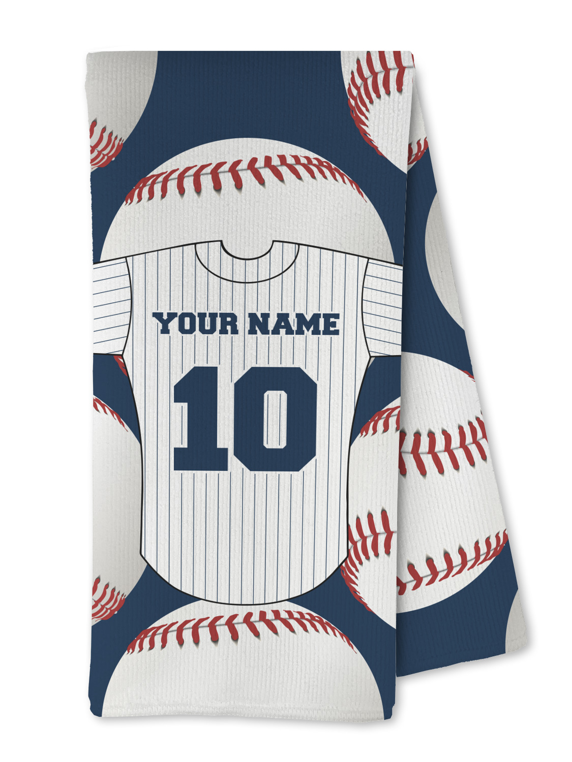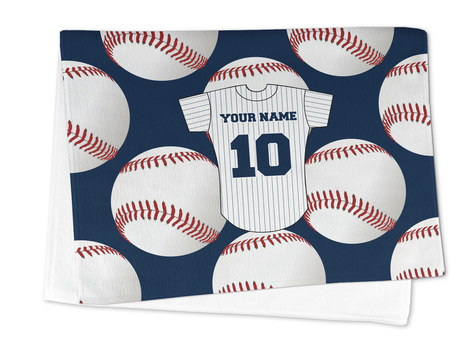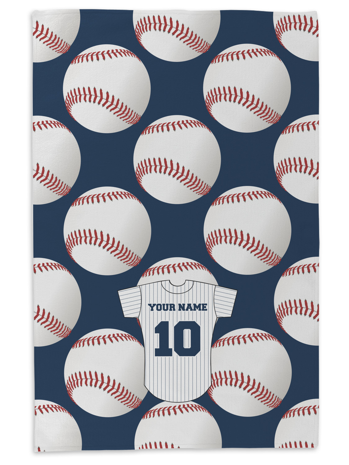 This design with baseballs in the background and a baseball jersey for name & number personalization will perfect for the baseball fanatic. The colors can all be changed - so you can change the colors to match your team color - the background color, the color of the jersey sleeves, the body and even the stripes' color can be changed!