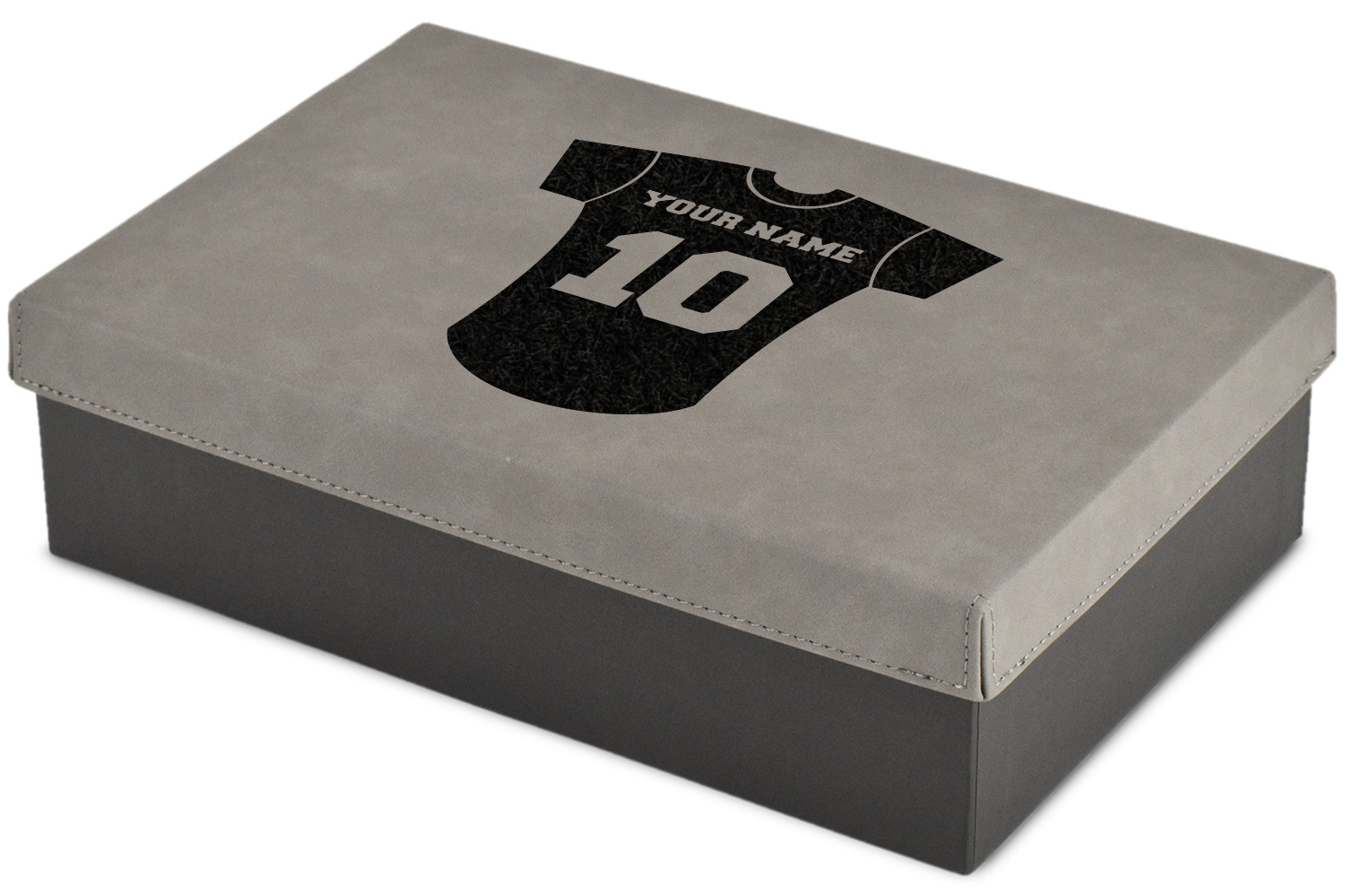 These gift boxes are available in 3 different sizes to accommodate various sized gifts. Available in gray as a neutral color for any occasion as well as to showcase your design boldly. Engraved with a laser this high quality paper board and faux leather gift box is unique and makes any gift stand out.