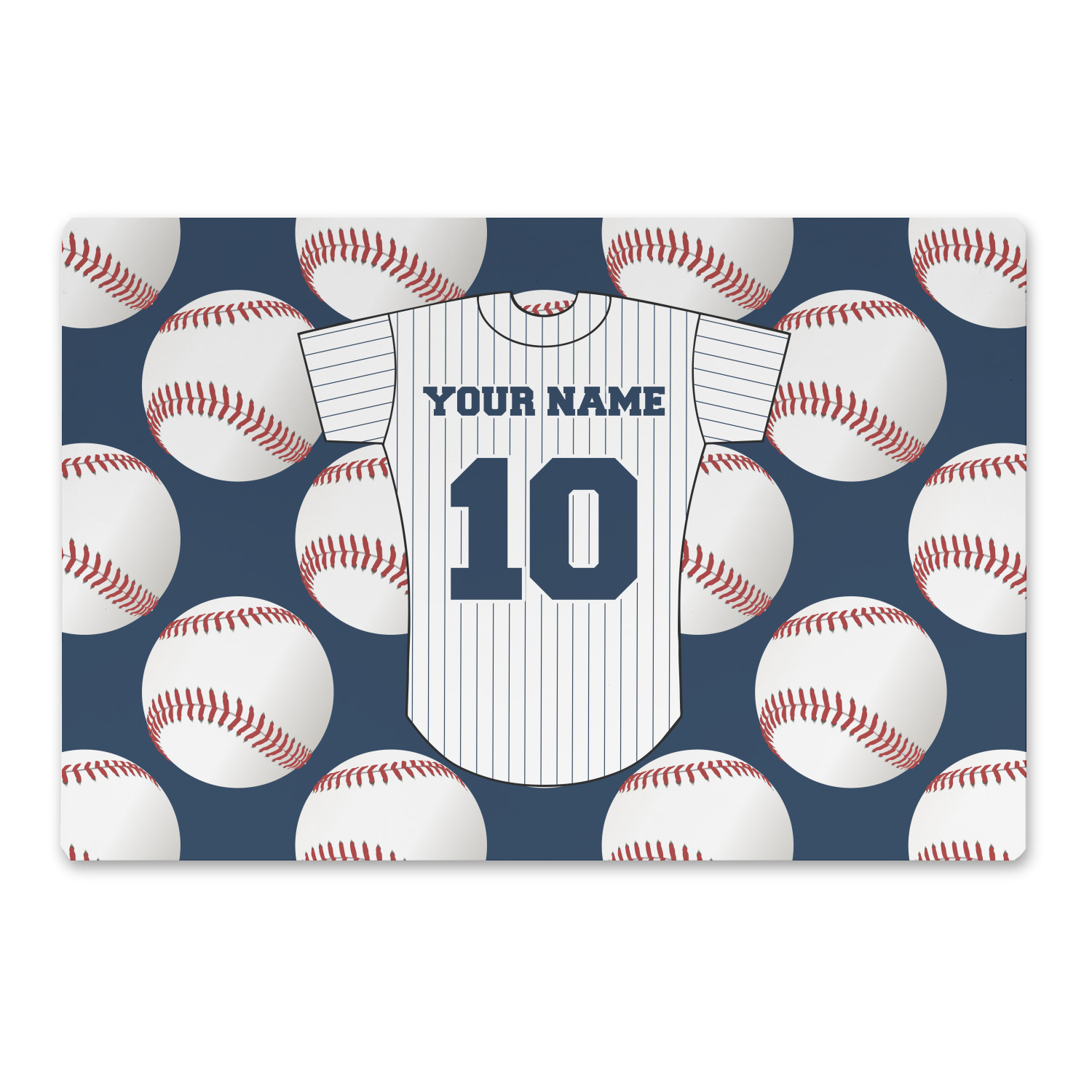 The personalization we have chosen is name and number on the back of the baseball jersey. We have also used the front of the jersey for the team name in the coordinating design. You have the choice of using the back as we have, or the front of the jersey or use both and add the team name to the personalization.