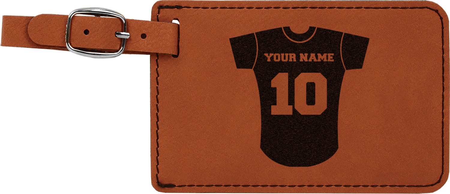 This luggage tag will surely be able to get you started in having all the right tools for traveling. It is made of a beautiful leatherette material that is a nice shade of cognac brown. The front of the tag is where your design goes. The sturdy black stitching gives your design an extra pop and gives the tag extra durability. The back of the tag has a clear vinyl window where you can slip in your address card. The tag comes with a great little buckle strap that you can easily use to clip to your suitcase. The tag itself measures at approximately 5.5"W x 4.25"H.