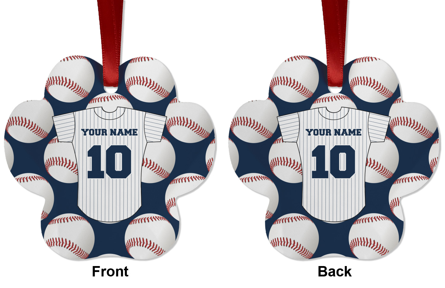 We offer double-sided printing on our personalized metal ornaments all with a gloss finish to make sure your Christmas tree continues to illuminate through the night. We offer 4 different metal ornament shapes to help express yourself or loved ones! Choose from our ball, paw print, star, or frame metal ornaments. Each metal ornament is an aluminum material sure to last you as many years as needed to share the joy and warmth of the holiday. We pair each customizable ornament with a red ribbon to tie your ornament and hang on your Christmas tree!