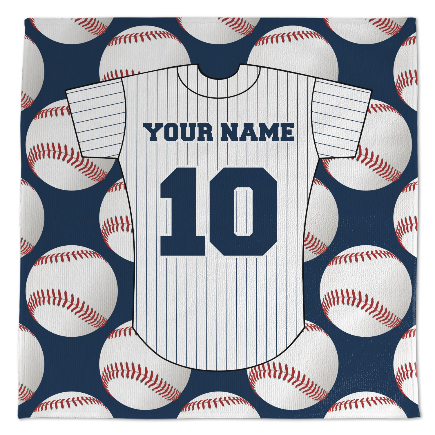 This design with baseballs in the background and a baseball jersey for name & number personalization will perfect for the baseball fanatic. The colors can all be changed - so you can change the colors to match your team color - the background color, the color of the jersey sleeves, the body and even the stripes' color can be changed!