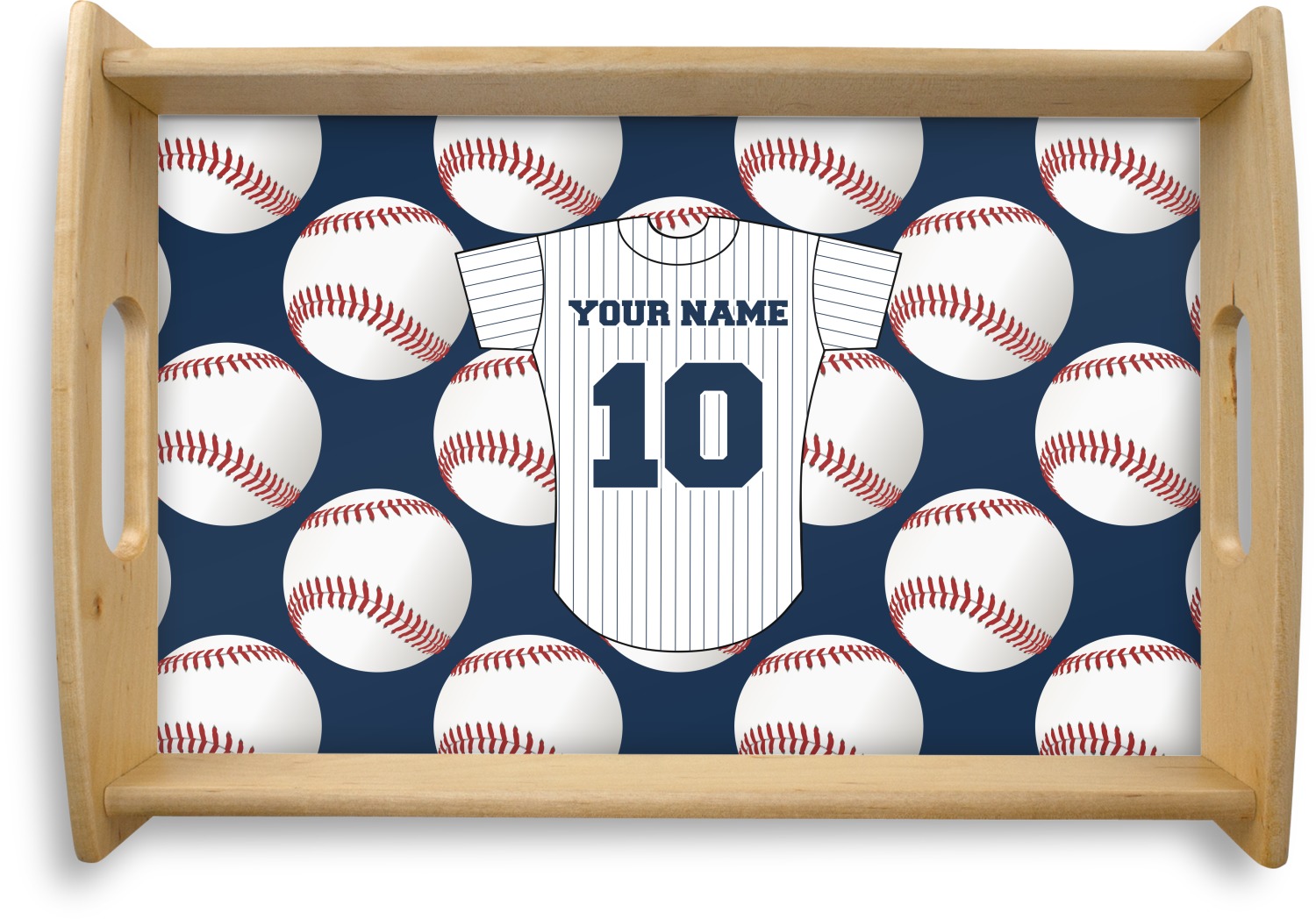 This design with baseballs in the background and a baseball jersey for name & number personalization will perfect for the baseball fanatic. The colors can all be changed - so you can change the colors to match your team color - the background color, the color of the jersey sleeves, the body and even the stripes' color can be changed!