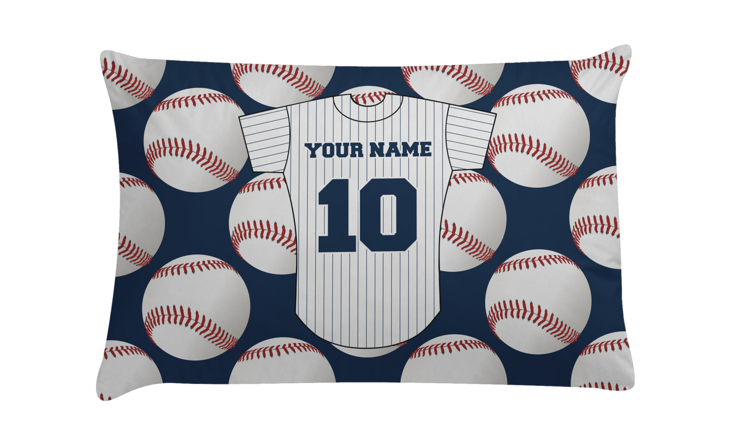 This design with baseballs in the background and a baseball jersey for name & number personalization will perfect for the baseball fanatic. The colors can all be changed - so you can change the colors to match your team color - the background color, the color of the jersey sleeves, the body and even the stripes' color can be changed!