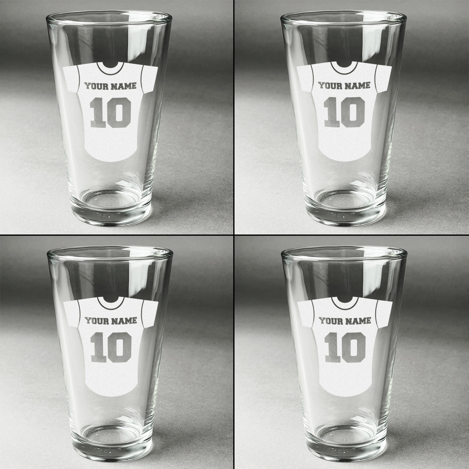 Available in a single glass or a set of 4 - each glass will be custom engraved with your design. Each glass holds 16 oz and measure 5.75"H x 3.5"W.