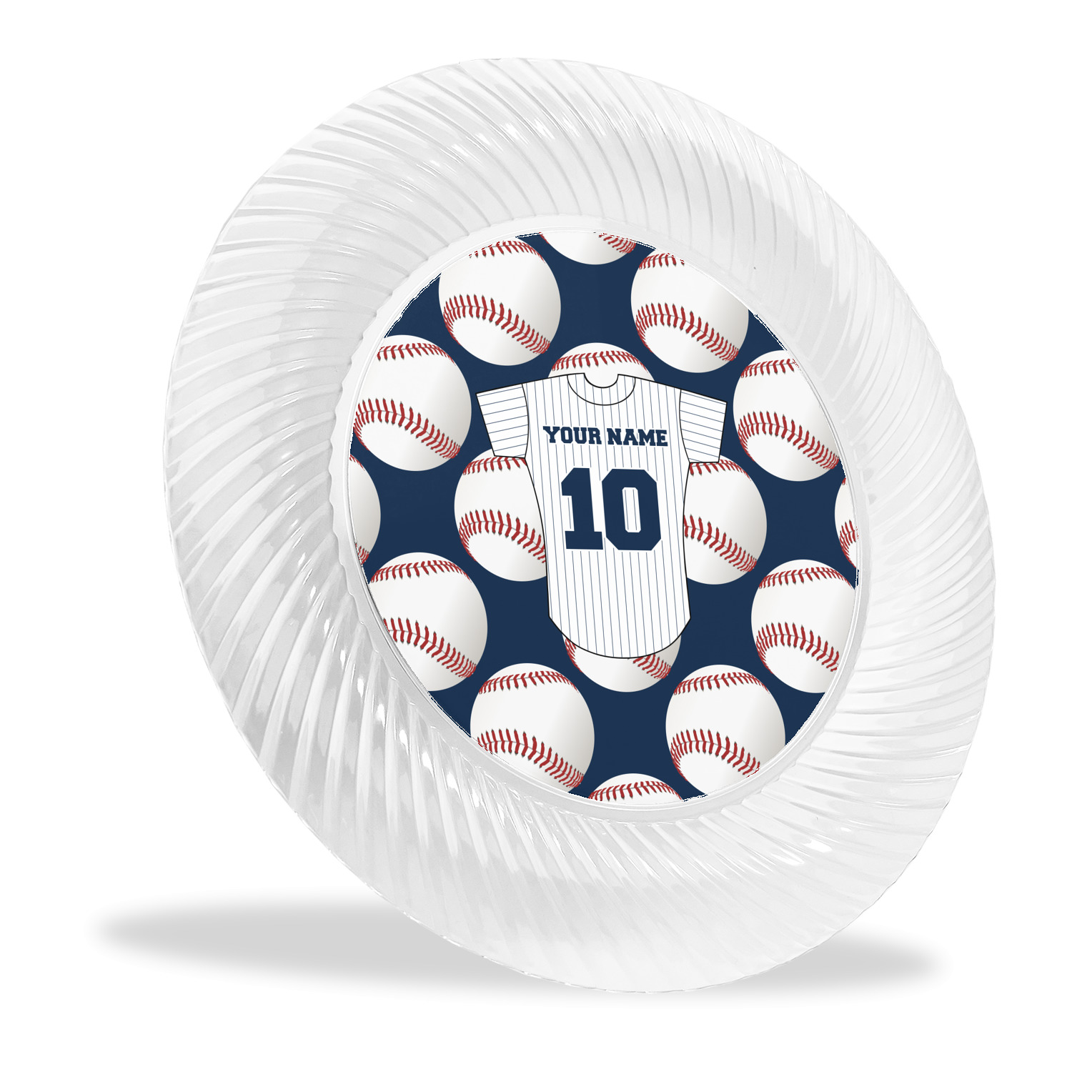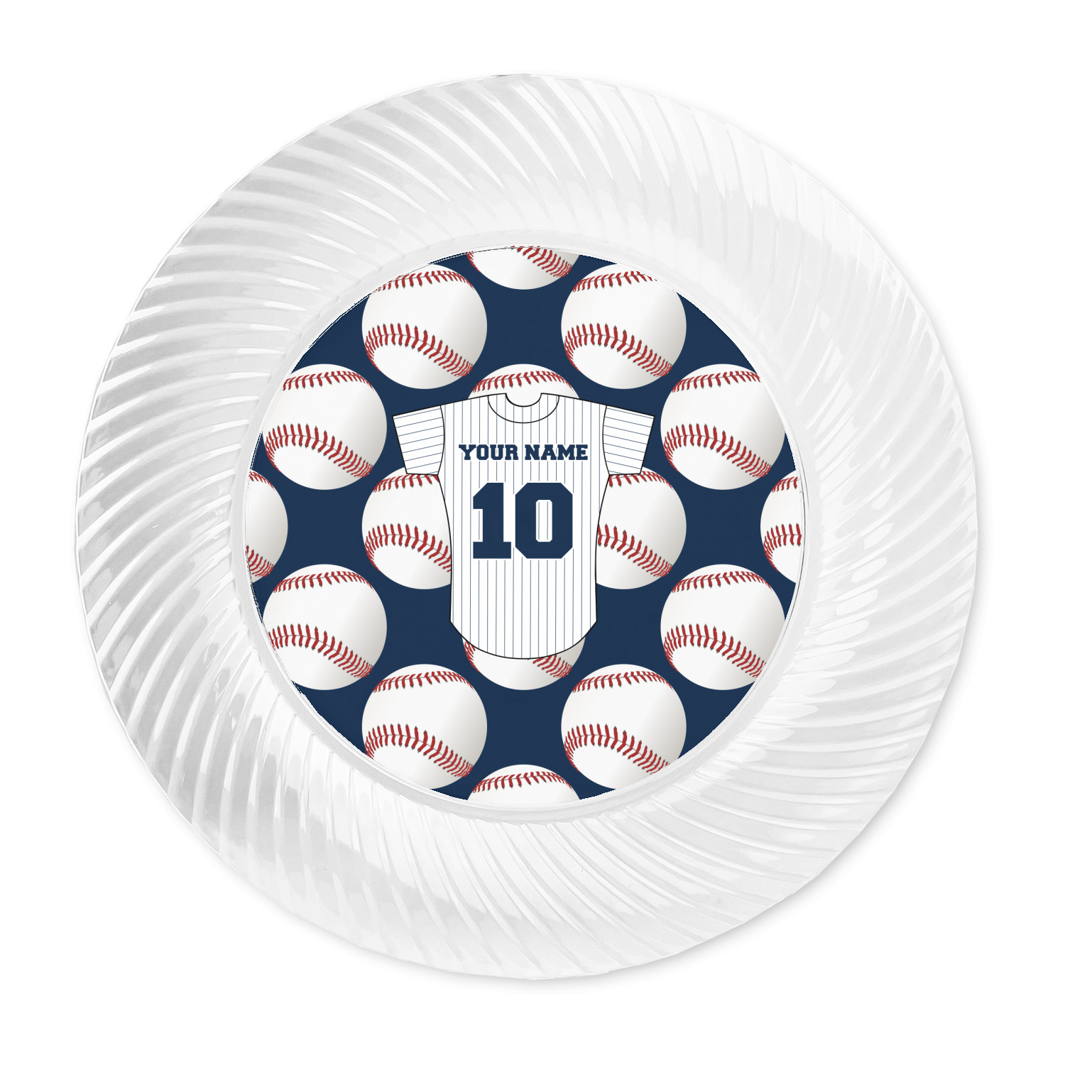 Made from a beautiful clear plastic plate as a base, your design is printed to the underside of the plate. The outside of these disposable plates has a classic swirl texture to it for a high quality look and feel.