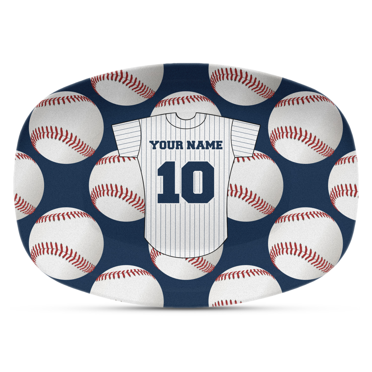These serving platters are made from a composite, thermo-set, polymer plastic that gives it the versatility, durability, and weight of a melamine platter, without any of the downsides of melamine. These personalized platters, can withstand temperatures up to 250 degrees Fahrenheit, for up to 60 minutes. No harmful chemicals, such as BPA, formaldehyde, and DEHPs were used in the manufacturing of this product. This large serving platter measures at 14" x 10.25", and is spacious enough to hold any of your appetizers or bite-sized desserts. The platter exhibits your personalization across the entirety of its front.