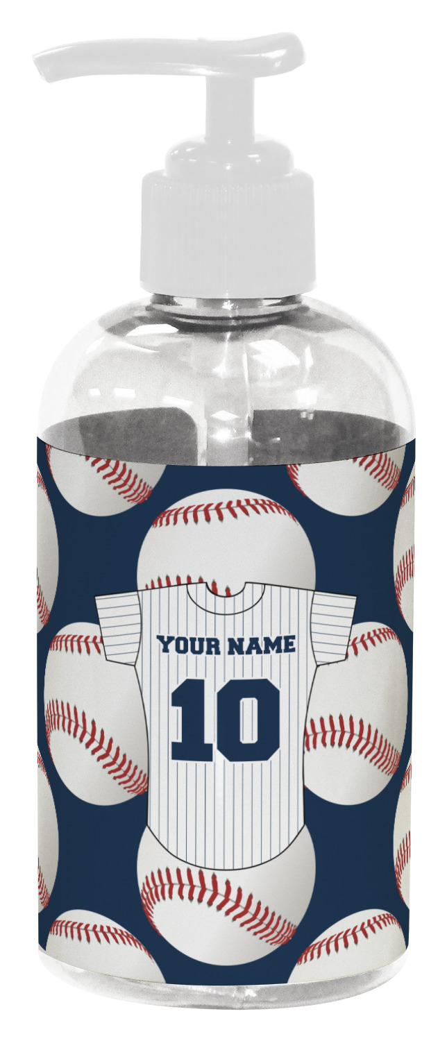 This design with baseballs in the background and a baseball jersey for name & number personalization will perfect for the baseball fanatic. The colors can all be changed - so you can change the colors to match your team color - the background color, the color of the jersey sleeves, the body and even the stripes' color can be changed!