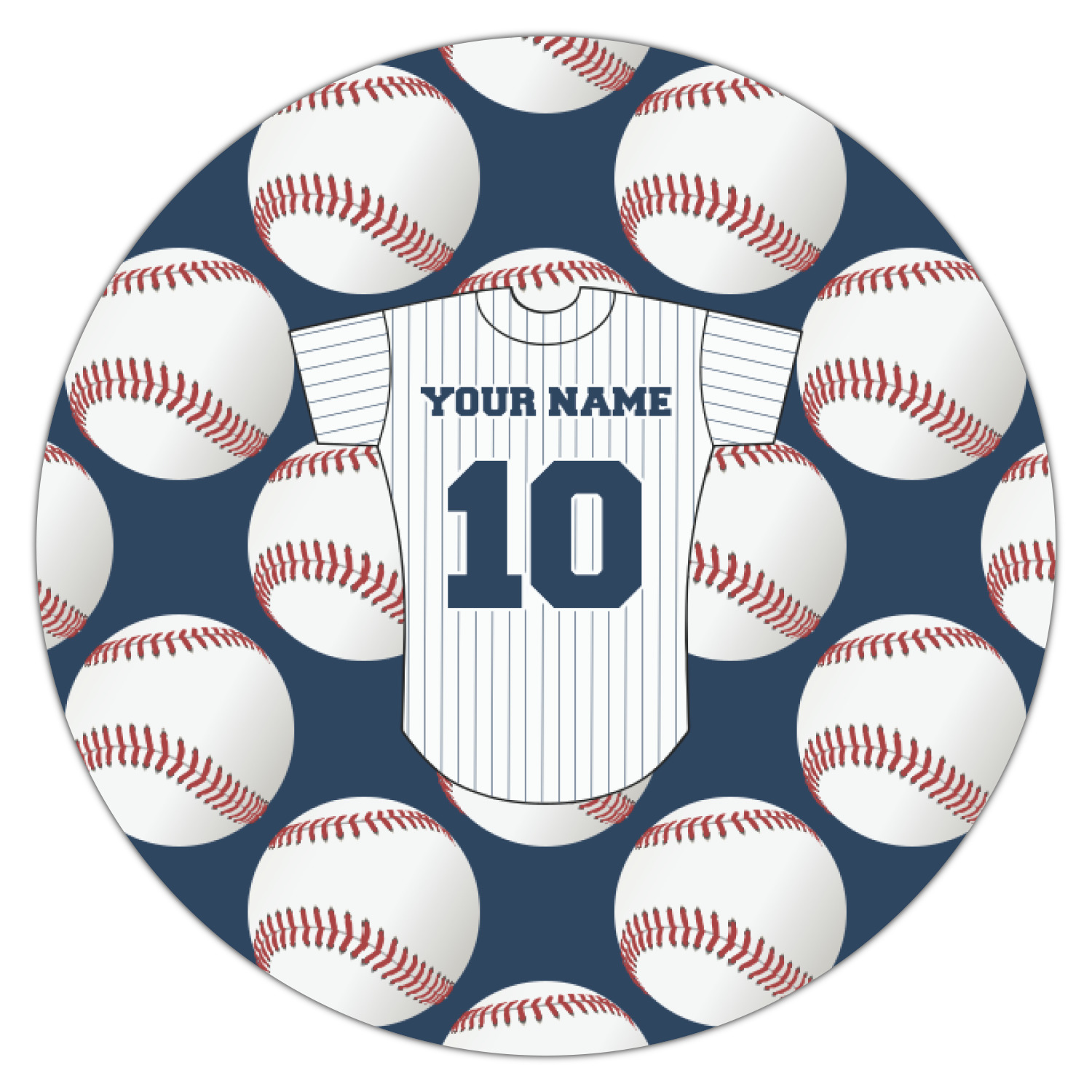 This design with baseballs in the background and a baseball jersey for name & number personalization will perfect for the baseball fanatic. The colors can all be changed - so you can change the colors to match your team color - the background color, the color of the jersey sleeves, the body and even the stripes' color can be changed!