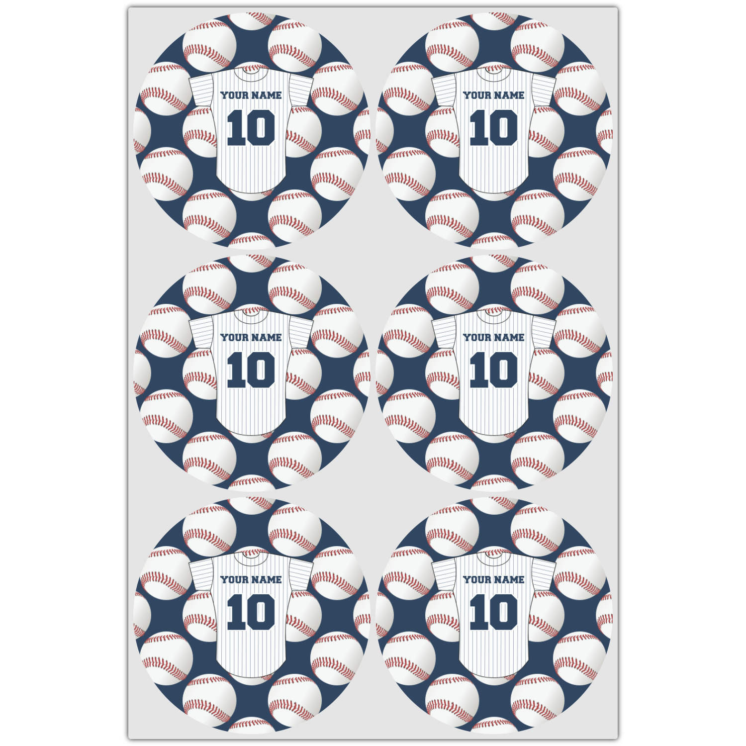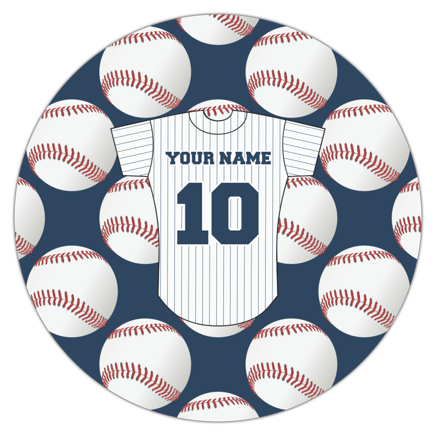 This design with baseballs in the background and a baseball jersey for name & number personalization will perfect for the baseball fanatic. The colors can all be changed - so you can change the colors to match your team color - the background color, the color of the jersey sleeves, the body and even the stripes' color can be changed!