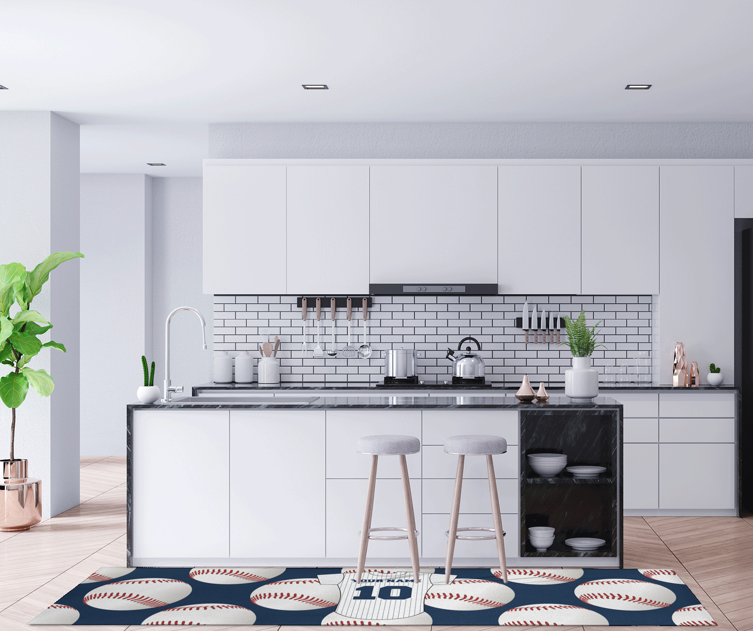 Our custom runner rugs and area rugsare both velvety soft and smooth, with a short pile, beautiful sewn corners and edges on the poly chenille face. We recommend adding an anti-slip mat under your runner rug to prevent it from sliding when under foot when placed on hard or smooth surfaces.