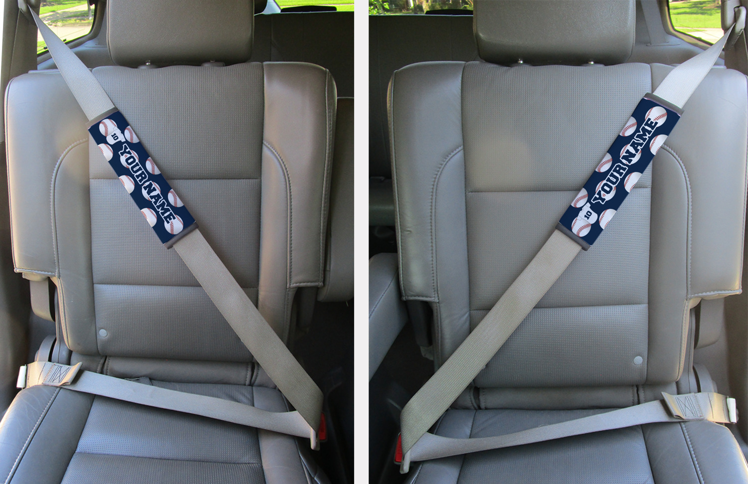 Made from neoprene, our seat belt strap covers wrap around the belt itself and have a Velcro tab for easy attachment and closure. The belt's edges are trimmed with a black polyester for a secure finish. Each cover is 9.5 by 7 inches when open and 9.5 by 2.5 inches when closed. We print your personalized design on the face of the seat belt pad.